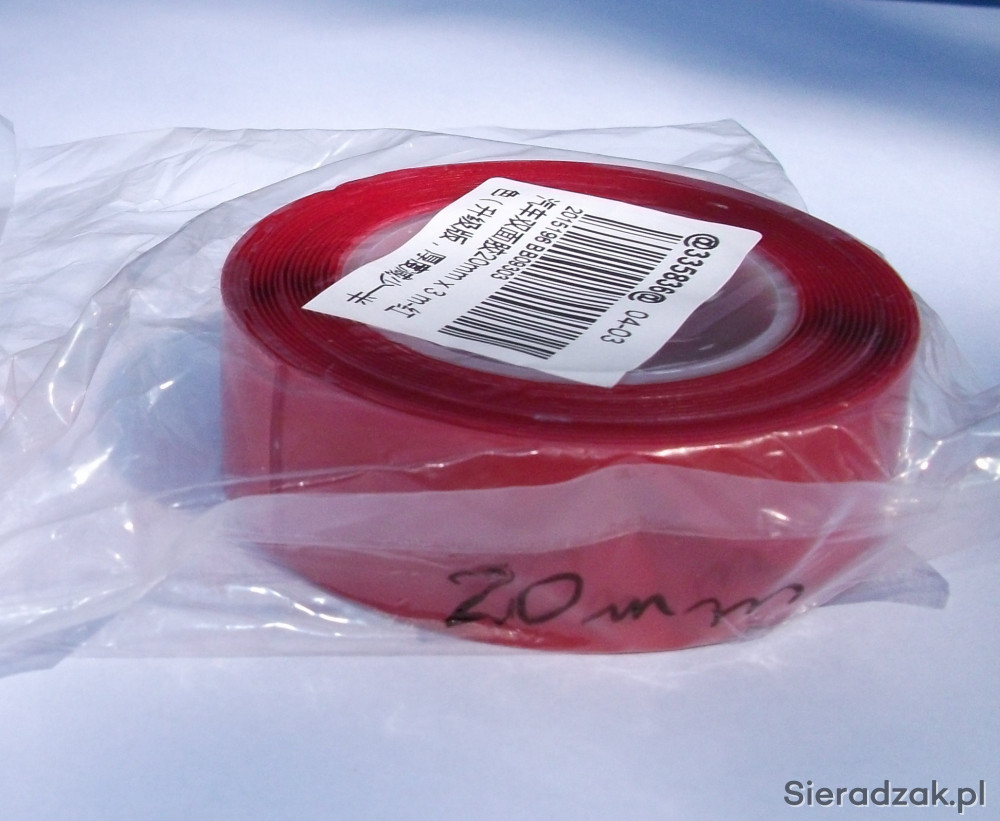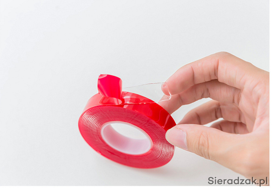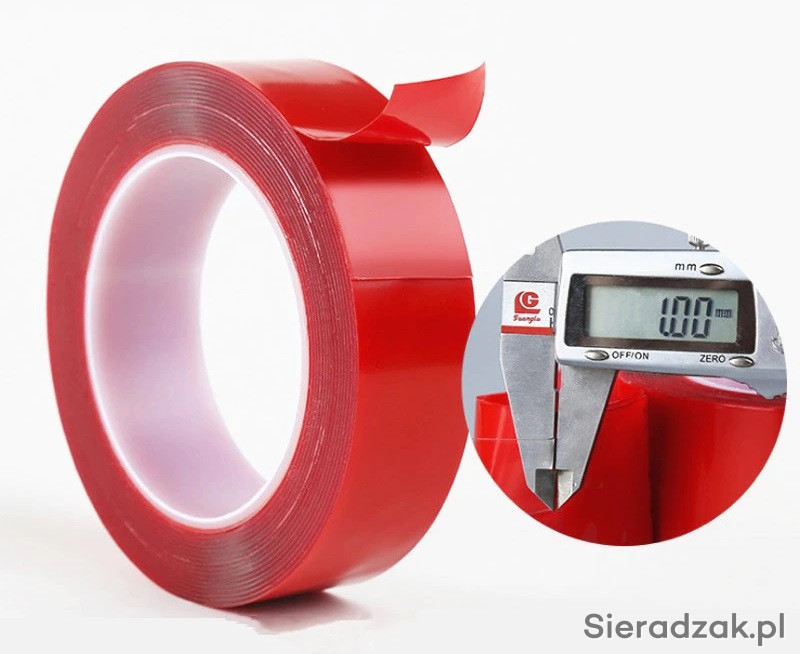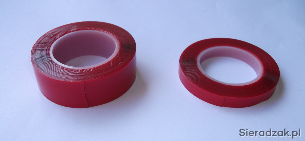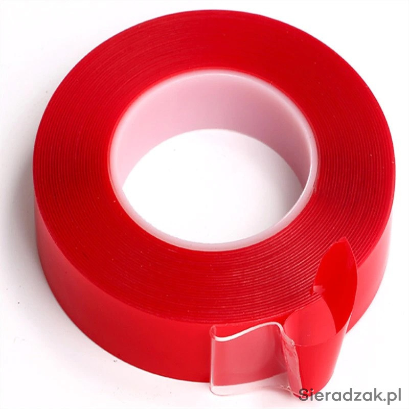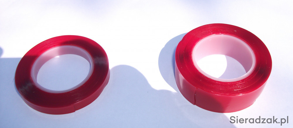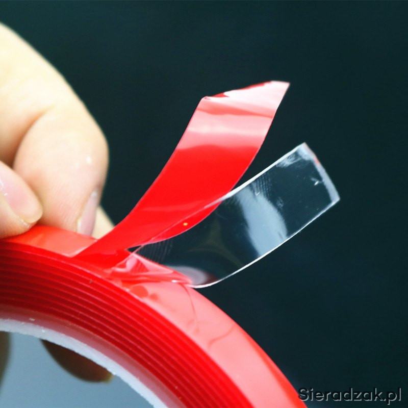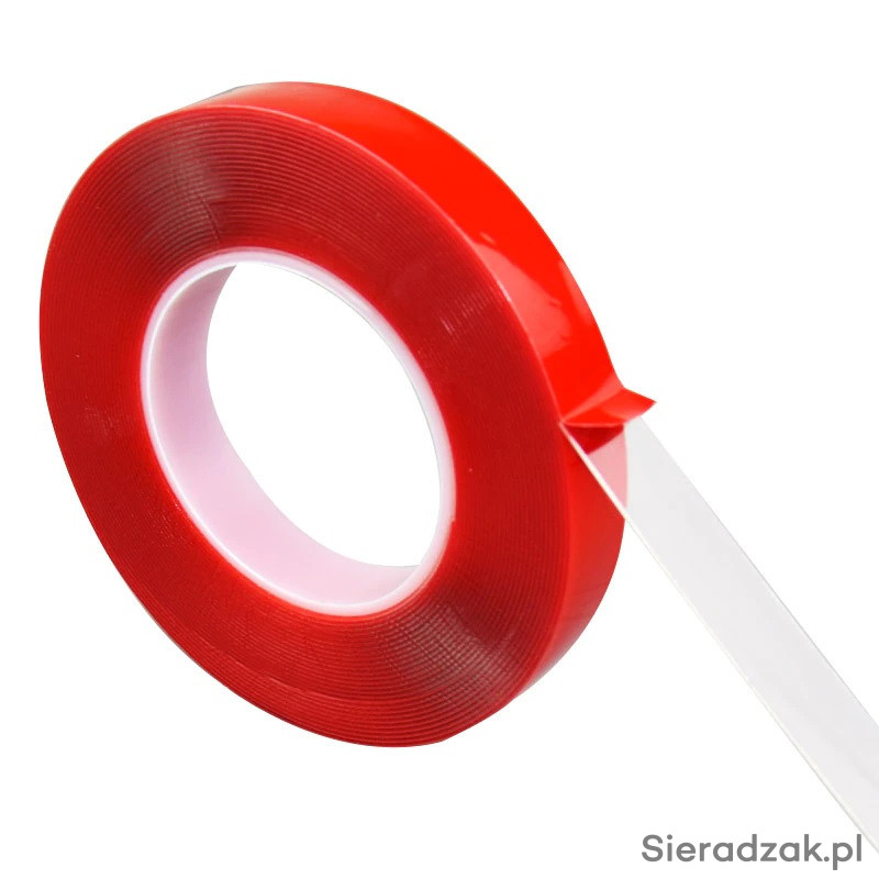 Oferuję taśmę 3M dwustronnie przylepną, bardzo silną; do stosowania na zewnątrz i do wewnątrz. Najczęściej stosowana jest do klejenia na szybach ponieważ jest idealnie przezroczysta.
