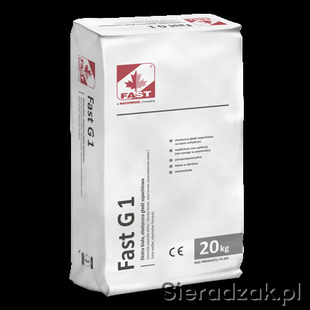 Gładź szpachlowa FAST G1 jest gotową, suchą mieszanką wyprodukowaną na bazie mączki anhydrytowej z dodatkiem wypełniaczy i modyfikatorów poprawiających plastyczność i łatwość nakładania. Podczas wiązania nie podlega zjawisku kurczenia, a po wyschnięciu daje się łatwo obrabiać. Dużą zaletą jest wydłużony czas gotowości produktu do pracy oraz śnieżna biel, która zmniejsza zużycie farby podczas malowania. Może być nakładana ręcznie lub maszynowo.