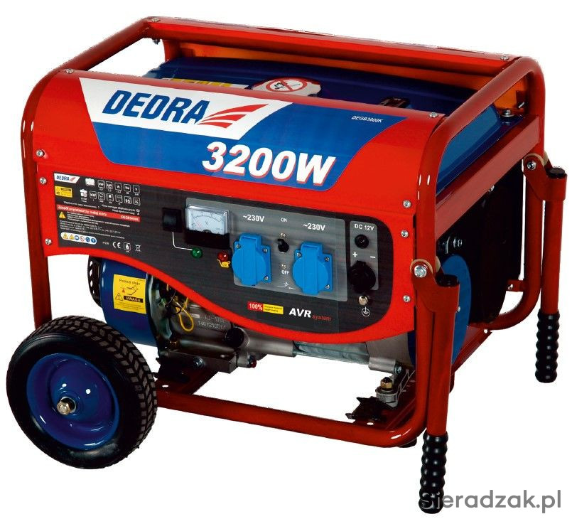 Zespół prądotwórczy DEGB3600K o mocy znamionowej 2800W służy jako awaryjne zasilanie w przypadku zaniku napięcia w sieci, bądź jako dodatkowe źródło zasilania wykorzystywane w gospodarstwach domowych, na działkach, kampingach czy obszarach na których odbywają się prace remontowo-budowlane. Rozruch silnika czterosuwowego odbywa się za pomocą linki. Zastosowanie miedzianego uzwojenia silnika zwiększa żywotność całego urządzenia oraz wpływa na stabilną pracę. Zespół prądotwórczy wyposażony jest w 2 gniazda 230V(AC) oraz 1 gniazdo 12V(DC). Urządzenie posiada 15L zbiornik na paliwo. Produkt cechuje się wysoką sprawnością i długim czasem działania przy niskim zużyciu paliwa. Duże koła transportowe zapewniają większą mobilność urządzenia i większy komfort podczas transportu.