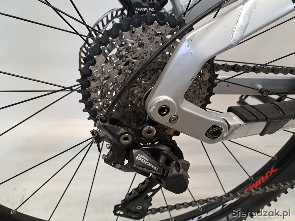 rama aluminium 20" 52cm (XL),napęd 1x10,przerzutka shimano deore,dzwignia zmiany biegów shimano deore,hamulce hydrauliczne tarczowe tektro orion 180/180mm,amortyzator sr suntour 34 aion lo-r z blokadą skoku,skok amortyzatora 100mm,damper sr suntour edge,opony schwalbe smart sam plus 2.10,obręcze rodi black jack 23,siodło vivo.stan techniczny bardzo dobry,wizualne ślady normalnego użytkowania.