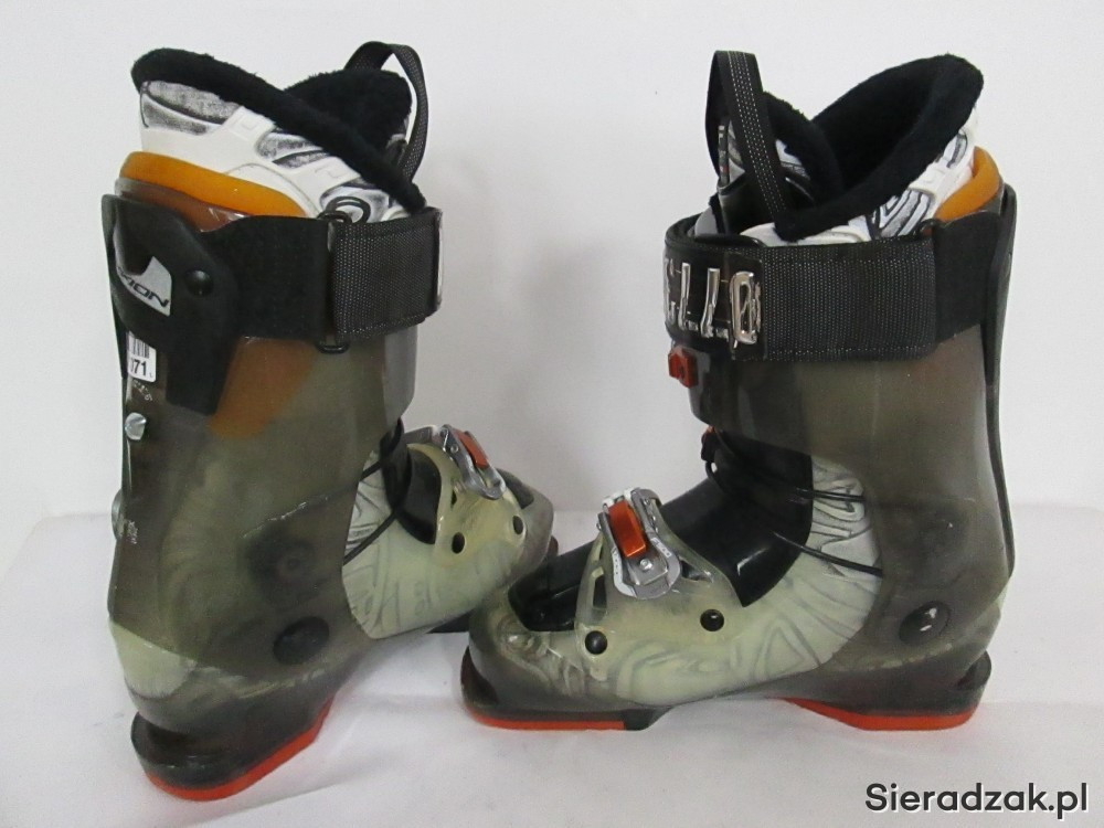 używane buty narciarskie w rozmiarze 41,długość wkładki wewnętrznej 26.5cm,flex regulowany 100-110,3 klamry z mikroregulacją,długość skorupy 307mm.buty z niewielkimi śladami użytkowania.