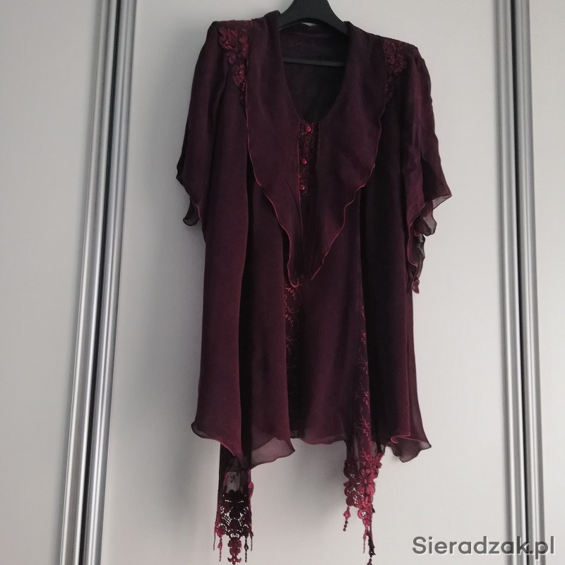 Elegancka sukienka garsonka 2-częściowa z wstawkami z bardzo ładnej koronki gipiury.