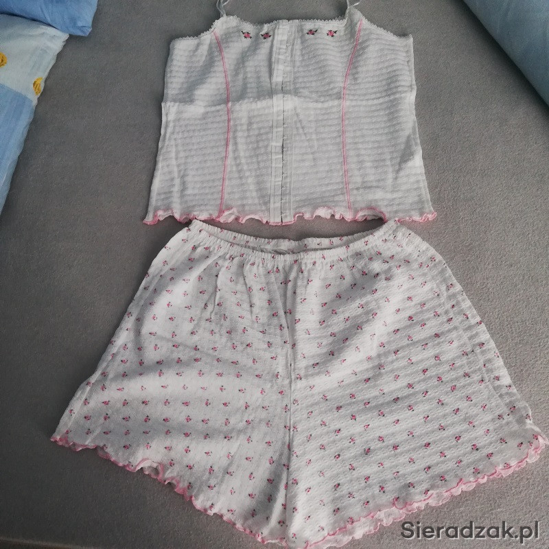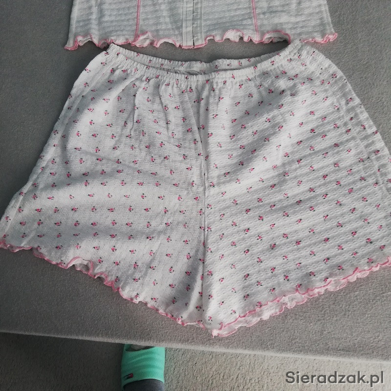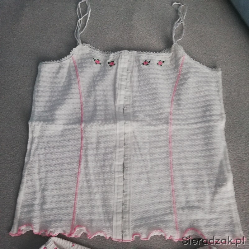 Letnia piżama damska letnia biała zdobiona drobnymi kwiatkami.