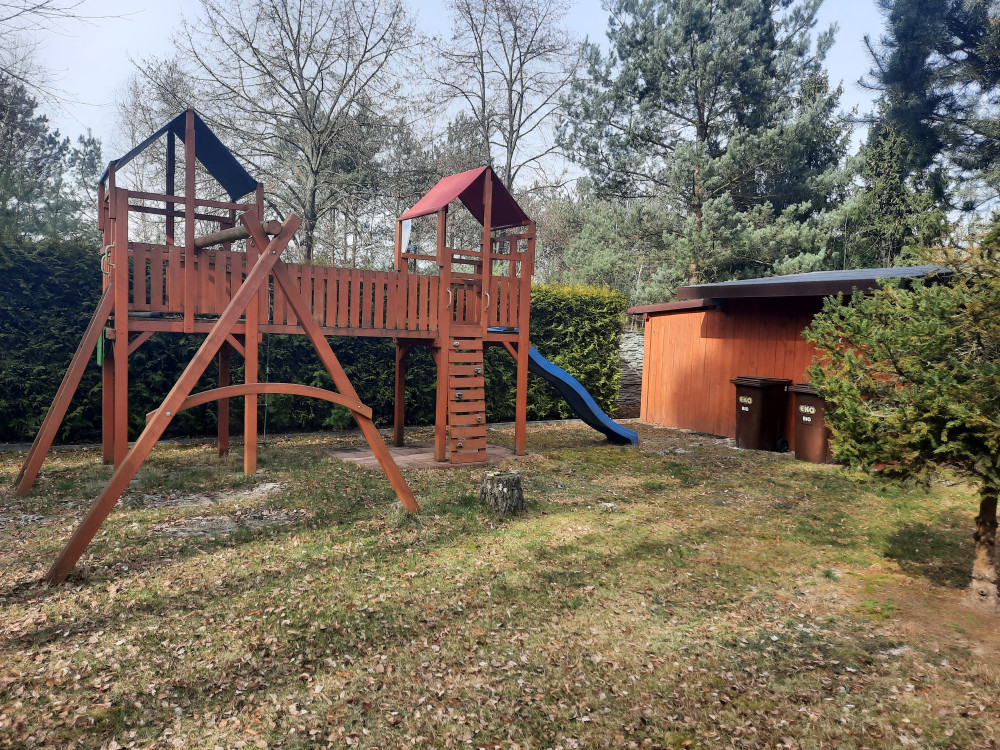 Działka w pełni zagospodarowana: dom, grill murowany, ognisko z rusztem, plac zabaw oraz pomieszczenia gospodarcze - letnia kuchnia, wiata na drewno, szopka.