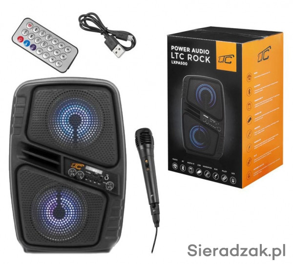 PRZENOŚNY ZESTAW NAGŁOŚNIENIOWY Z MIKROFONEM DO RĘKI I PODŚWIETLENIEM LED.