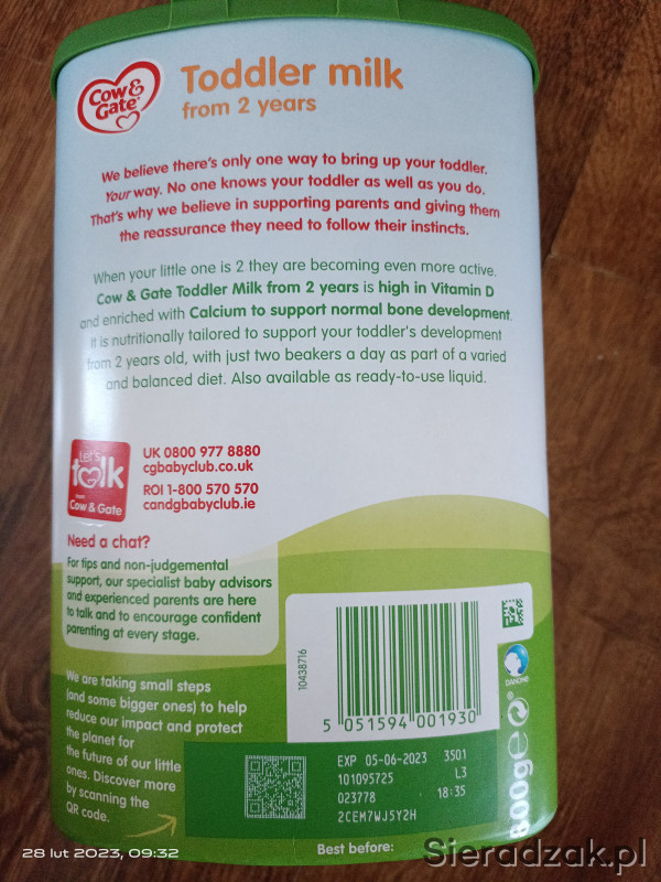 Cow & Gate Growing Up Milk 2+ Years jest wzbogacone trudno dostępnymi witaminami i minerałami, niezbędnymi do rozwoju Twojego dziecka.