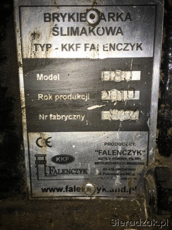 Sprzedam brykieciarkę, rok produkcji 2010, używana tylko 2 lata, w pełni sprawna, wydajność ok. 120 kg/godz, zapasowy ślimak w gratisie, średnica brykietu 70mm