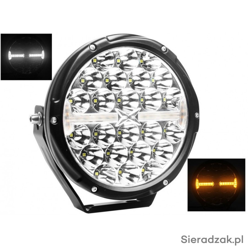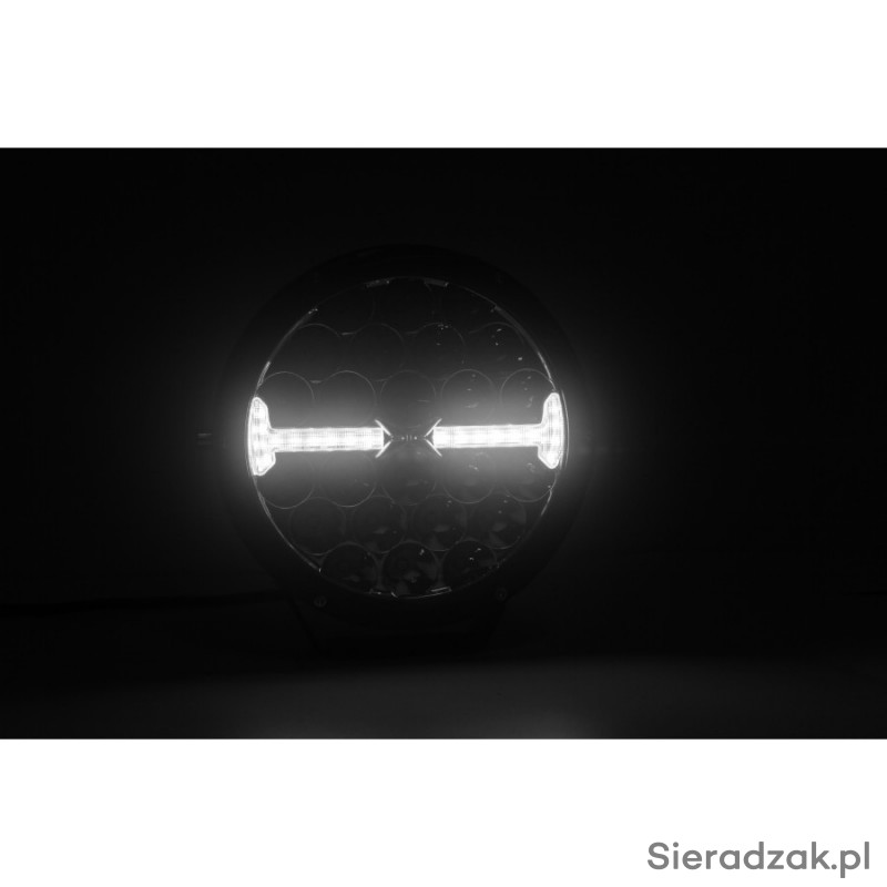 posiadamy w sprzedaży Reflektor drogowy + pozycja środek + strobo amber, posiada funkcje: Pozycja pasek, Światło drogowe, Światło ostrzegawcze. Posiada ona 24 + 20 + 20 LEDów. Charakteryzuje się poborem mocy w wysokości 1,5 W, 100 W, 4,5 W. Jest produktem certyfikowanym. Zgodnie z normami takimi jak ECE R10, ECE R65, ECE R148, ECE R149. Ponadto jest ona zbudowana z materiałów: Klosz: PC, Obudowa: AL. Reflektor drogowy + pozycja środek + strobo amber jest mocowana na śruby. Napięcie wynosi 12 V/24 V.
