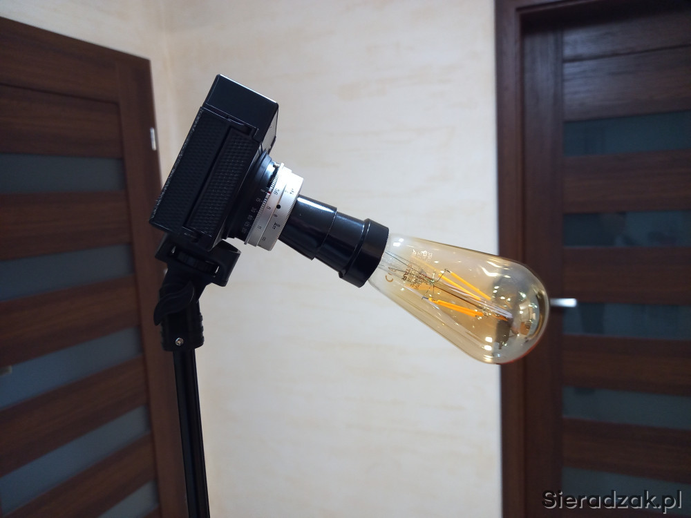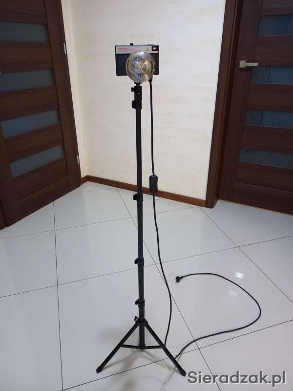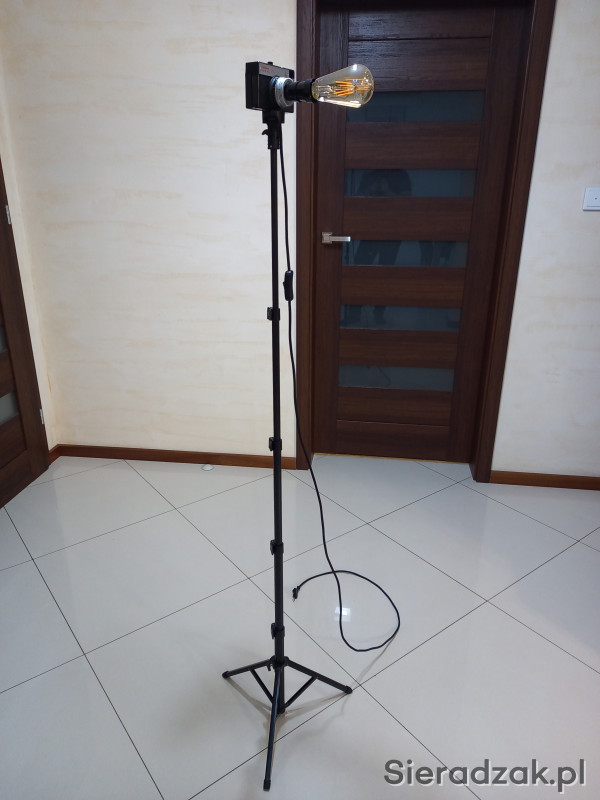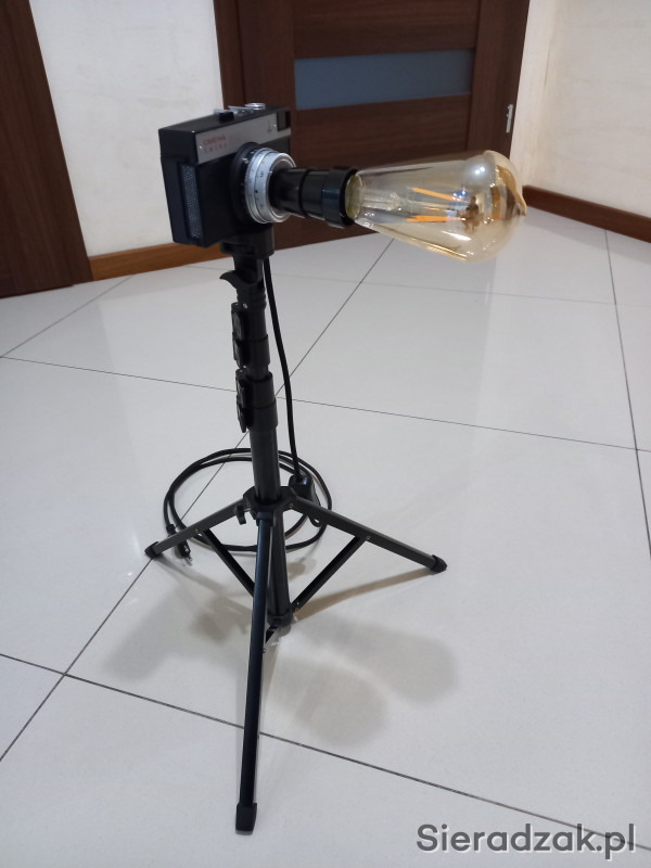 Nowa, unikatowa i niepowtarzalna lampa stojąca z aparatu fotograficznego w stylu retro, loft czy vintage. Piękny niezmieniony kształt kultowego niegdyś aparatu fotograficznego SMENA 8M z minionej epoki zachwyci zarówno pasjonatów fotografii jak i miłośników stylu RETRO. U wielu osób lampa ta będzie wywoływać piękne wspomnienia. To co kiedyś było przedmiotem marzeń może teraz nie tylko na co dzień cieszyć wzrok ale zostać bardzo użyteczną lampą w salonie, holu, pokoju, biurze, sklepie, restauracji czy zakładzie fotograficznym. Lampa ma bardzo wygodny regulowany statyw od 50 cm do 155cm wysokości, zajmujący bardzo mało miejsca, który umożliwia kierowanie światła lampy w dowolną stronę. Aparat fotograficzny SMENA 8M z 1978 roku z dowodem zakupu, nigdy nie używany. Żarówka ozdobna typu LED E27 4W 440lm FILAMENT, barwa światła ciepła 2200K. Przewód elektryczny w oplocie dekoracyjnym, długość 2,5m.