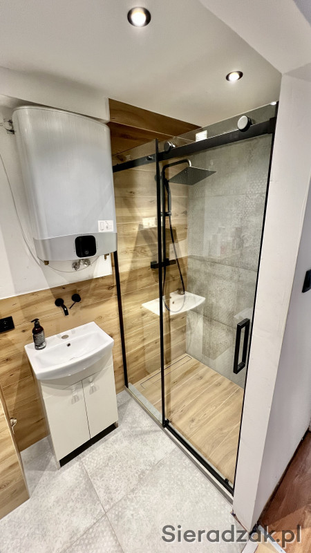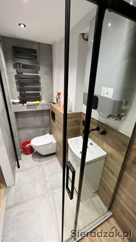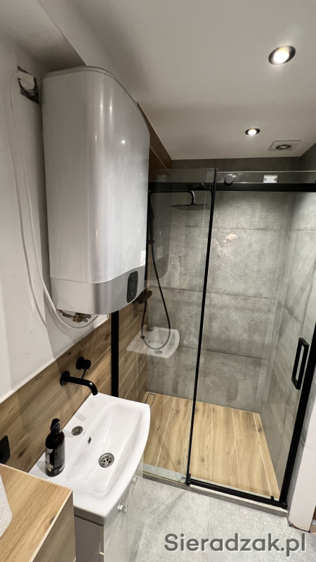 Całkowity remont łazienki zrobiony w 2021 roku - płytki, geberit, szklany prysznic, grzejnik, energooszczędny i nowoczesny bojler.