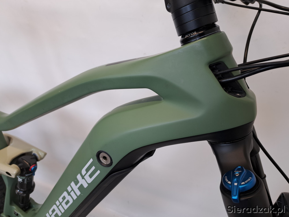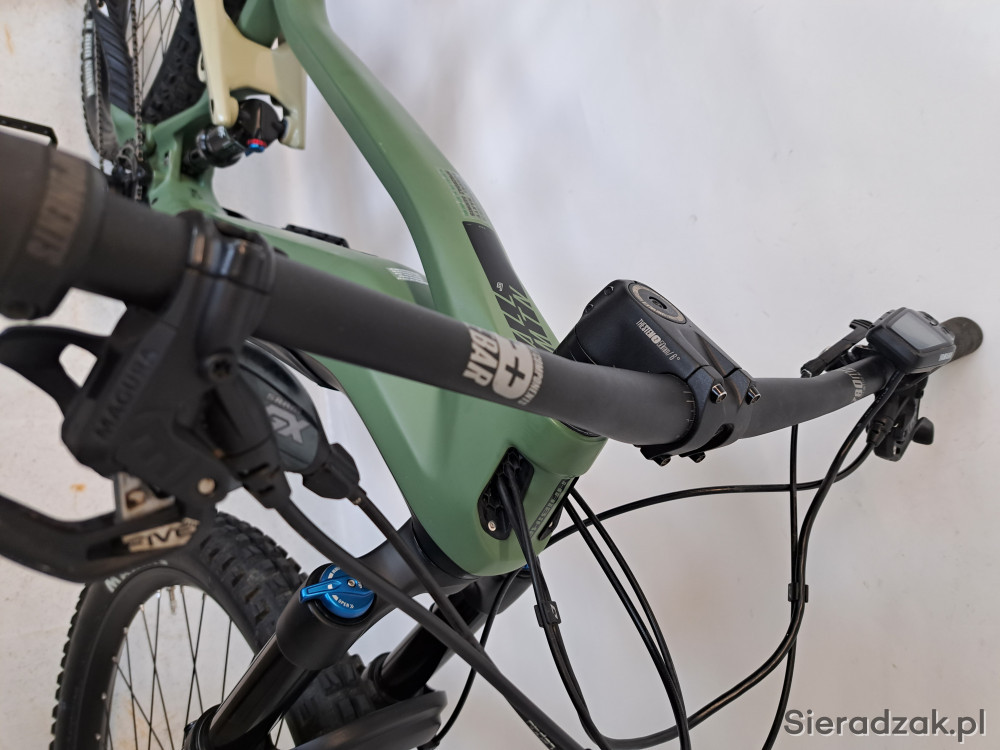 rama carbon 19" (L) napęd 1x12 przerzutka sram gx manetka sram gx amortyzator fox performance 38 z blokadą skoku skok amortyzatora 160mm damper fox float dps hamulce hydrauliczne tarczowe magura mt5 203mm sztyca podsiodłowa regulowana manetką przy kierownicy siodło haibike opona przód maxxis minion dhf 29 x 2.50,opona tył maxxis minion dhr 27.5 x 2.8 kierownica haibike 780mm.