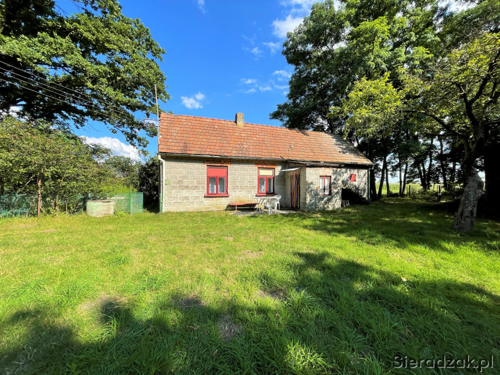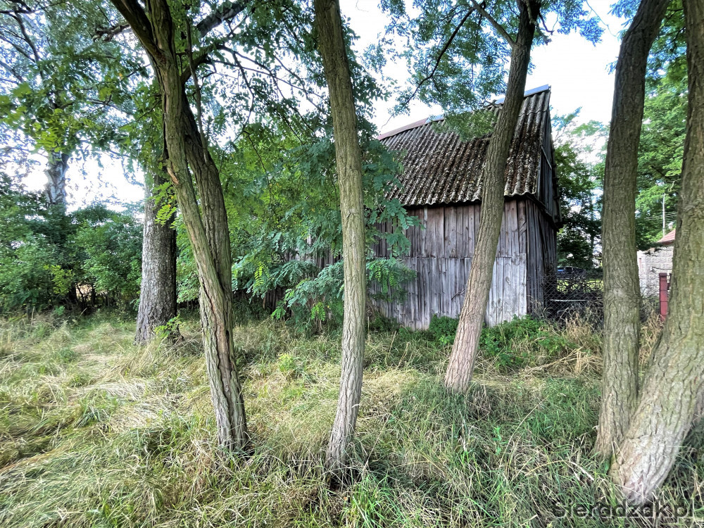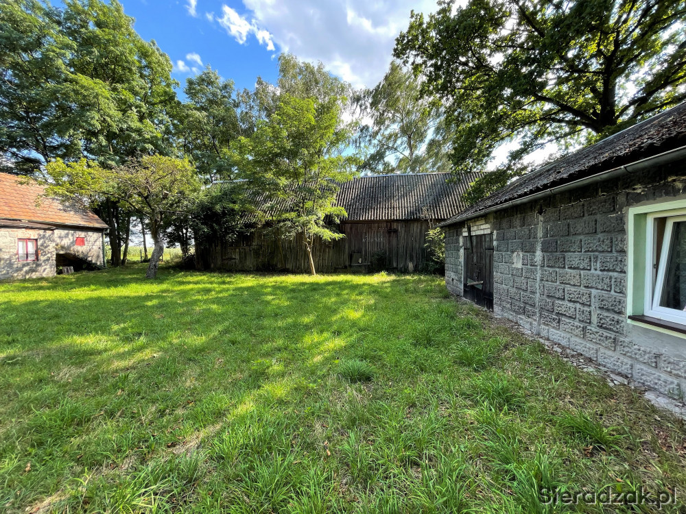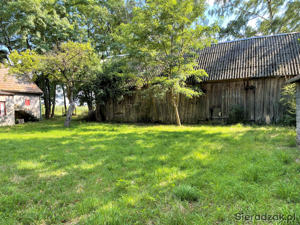 - druga część – zabudowana budynkiem mieszkalnym, murowanym z lat 50-tych, dwuizbowym (pokój, kuchnia) pokrytym dachówką betonową, drewniana stodołą i murowanym budynkiem gospodarczym.