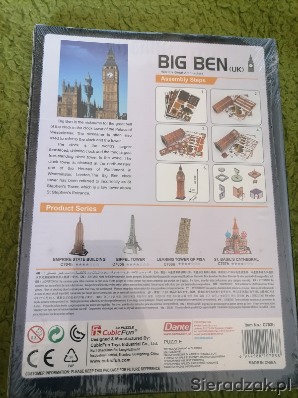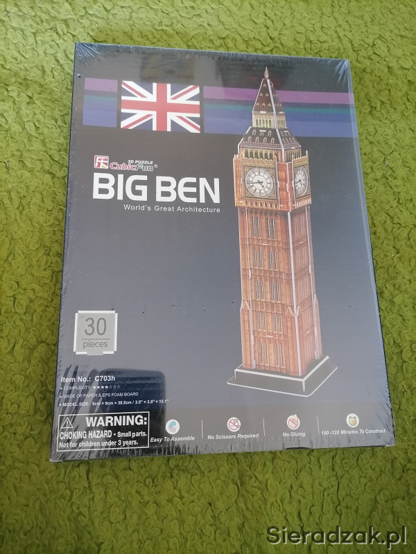 Puzzle 3D Big Ben firmy CubicFun, stan nowy, zapakowane, 30 kawałków