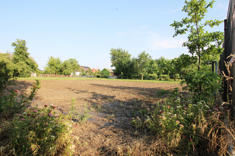 Działka częściowo zagospodarowana nasadzeniem owocowym - śliwa, czereśnia, jabłko.