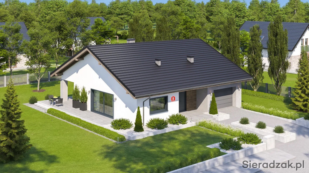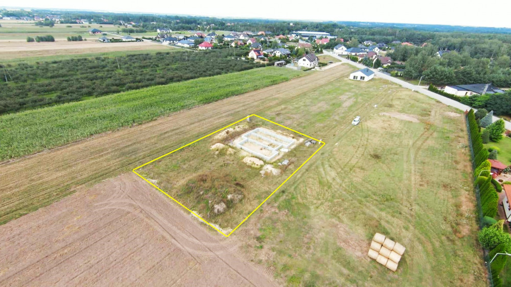 Na działce znajduje się murowany fundament budynku mieszkalnego o powierzchni użytkowej ogółem 124,80 m2 i mieszkalnej 103,20 m2. Wybrany projekt to dom przy Rubinowej 8.