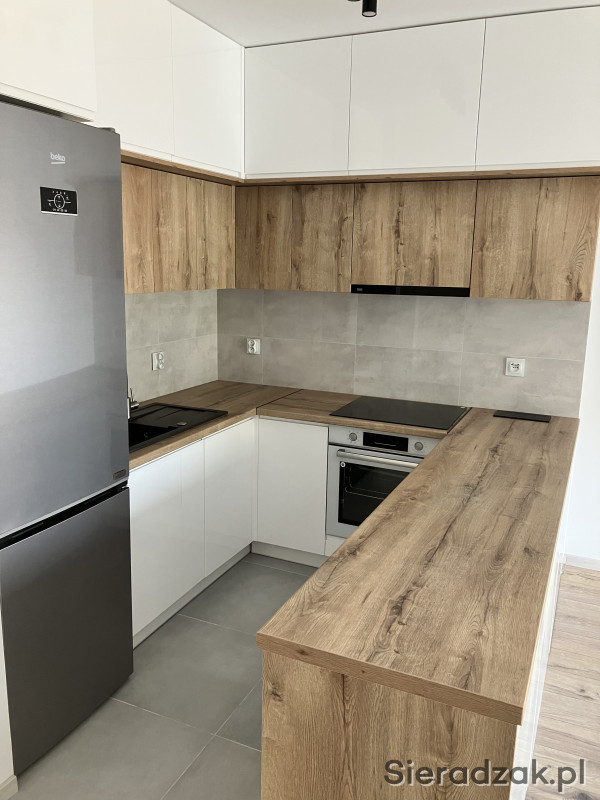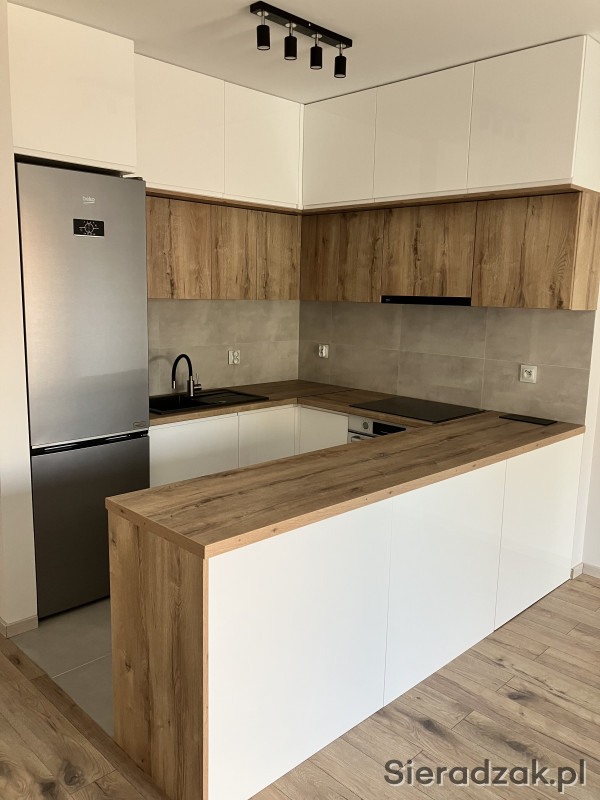 Wyposażenie: zabudowany aneks kuchenny (lodówka, płyta indukcyjna, piekarnik, zmywarka, okap), wyposażona łazienka, szafy w przedpokoju i sypialni, rolety zewnętrzne.