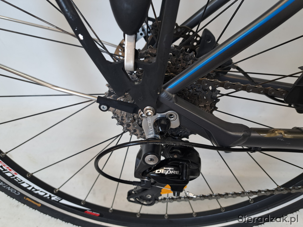 rama aluminium 20" 51cm,napęd 1x10,przerzutka shimano deore,dzwignia zmiany biegów shimano deore,hamulce hydrauliczne tarczowe shimano,amortyzator sr suntour nex z blokadą skoku,mostek regulowany,siodło syncros,opony continental contact plus,zabezpieczenie tylnego koła abus.stan bardzo dobry.