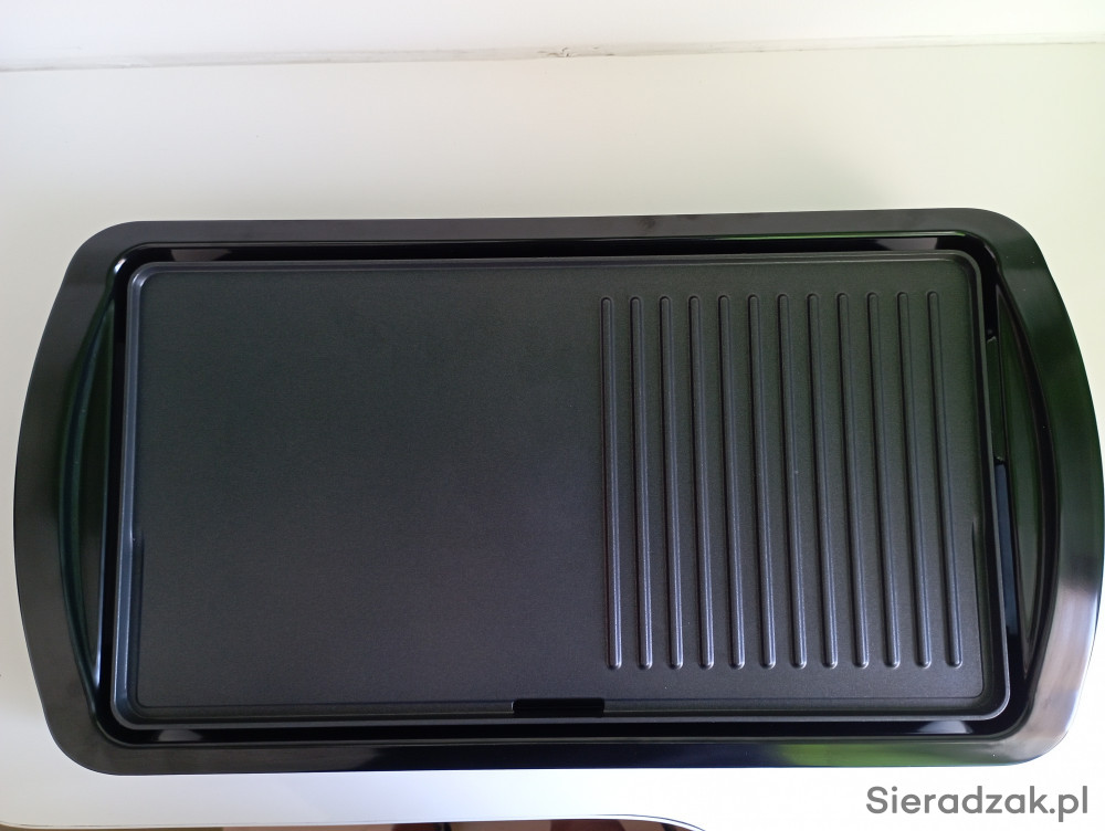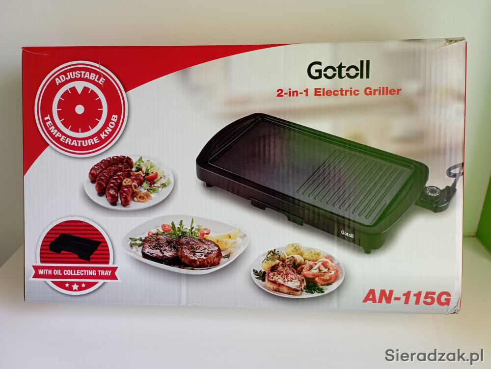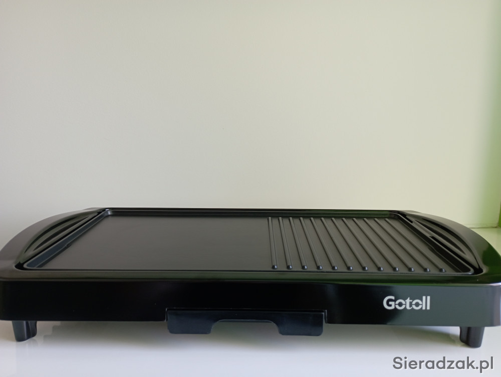 Gotoll Elektryczny grill stołowy z 2 obszarami gotowania, o wymiarach 43 x 23 cm nadaje się dla 4 – 6 osób. Można jednocześnie smażyć warzywa i mięso z regulatorem temperatury, powłoką zapobiegającą przywieraniu, tacka na tłuszcz, 5 stopni regulacji temperatury , moc grzewcza1800 W. Nadaje się na balkony i rodzinne grille na stole.Stan- nowy