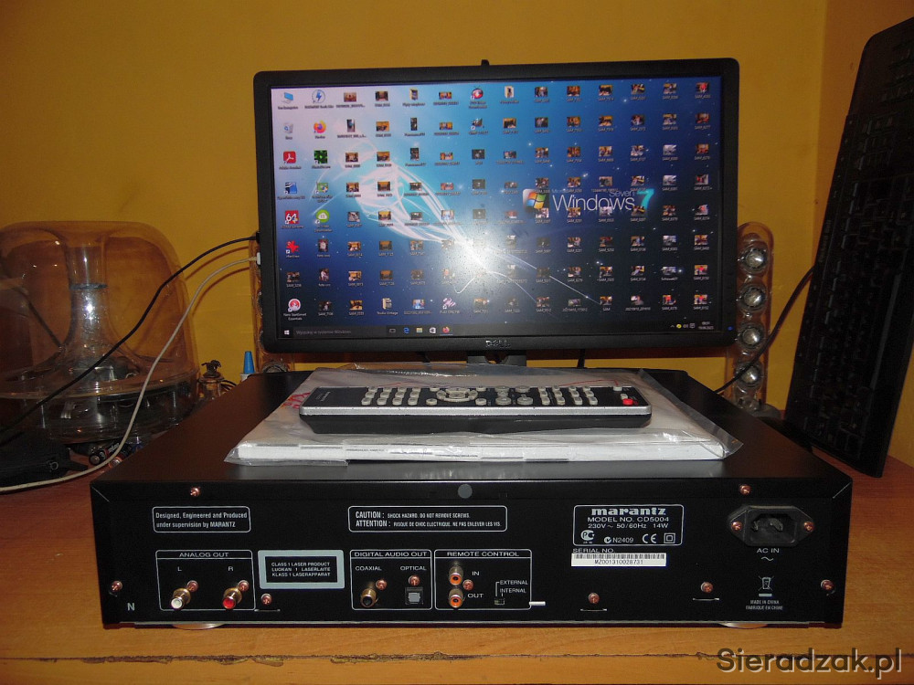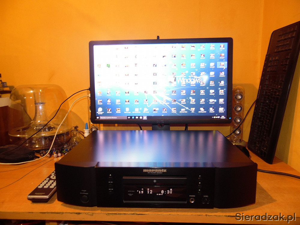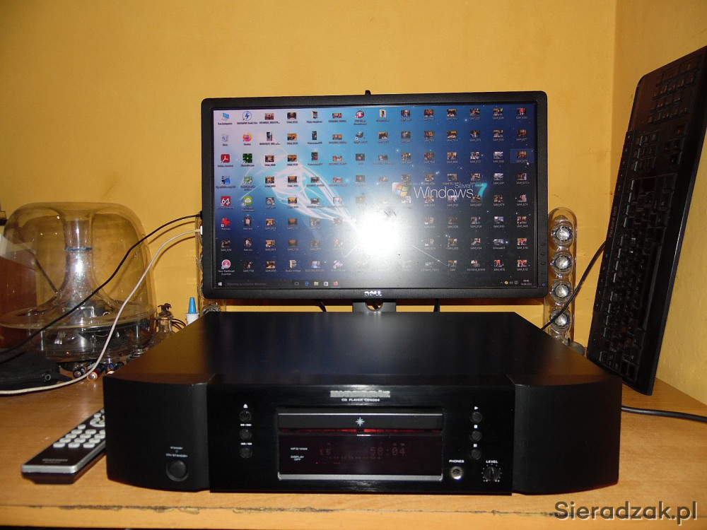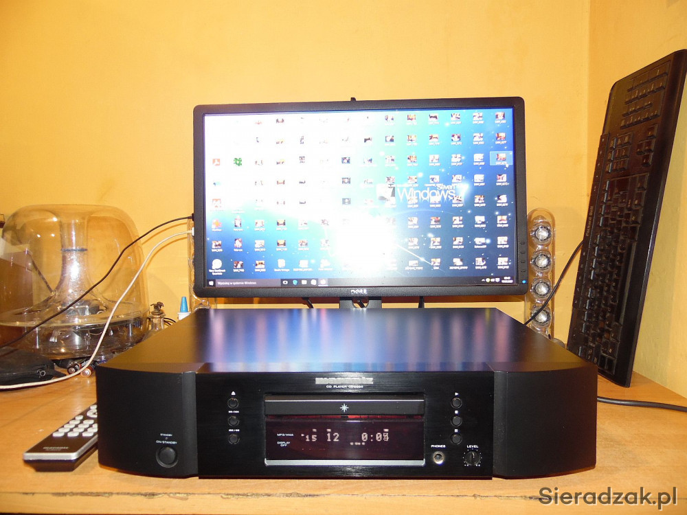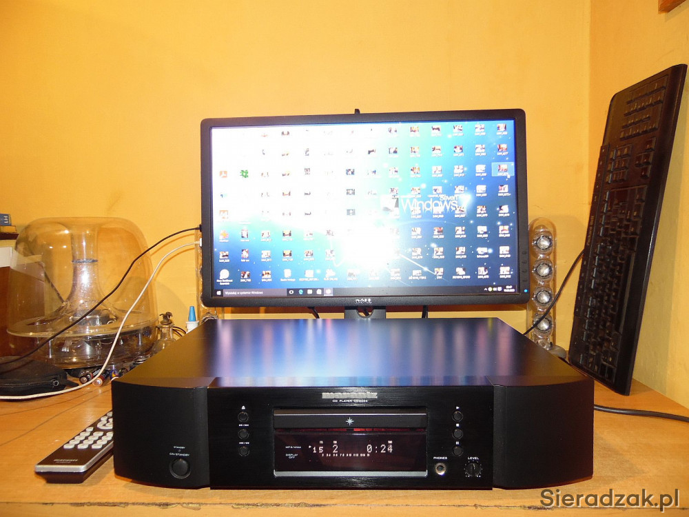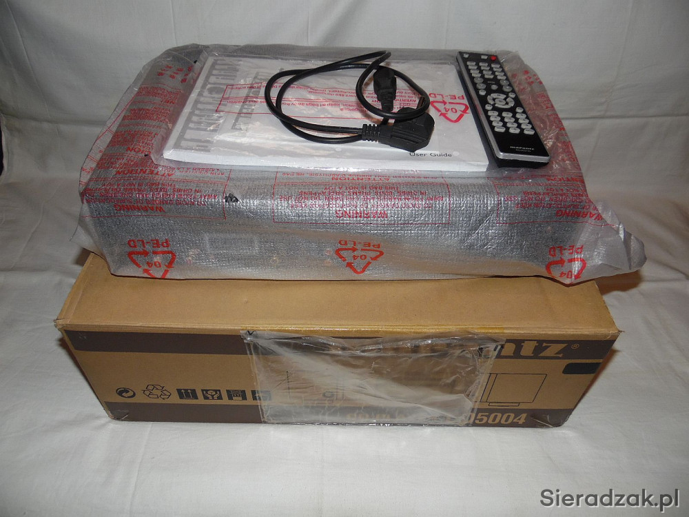 Odtwarzacz w kartonie sprawny jak nowy. Z papierami i pilotem - pilot niestety jest porysowany (takiego dokupiłem bo poprzedni sie zgubił przy przeprowadzce). Polecam. Sam CD jak nowy praktycznie był nie używany włączony tylko kilka razy.