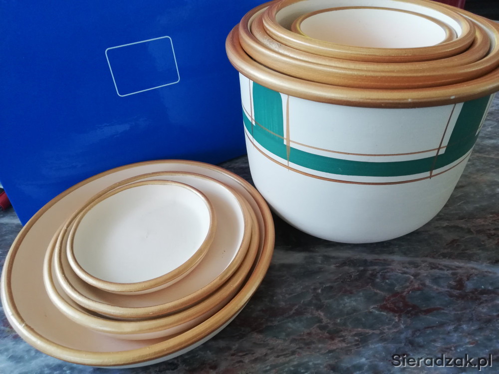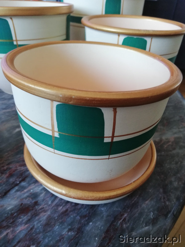 Mam do sprzedania komplet doniczek ceramicznych , praktycznie nie były używane, kolor dokładnie taki jak na zdjęciu. nieliczne, drobne ślady użytkowania na dwóch doniczkach i spodku. Jeden spodek niestety podczes przygotowań do zdjęć upadł i brakuje. Całość 140zł do negocjacji. Zapraszam do obejrzenia