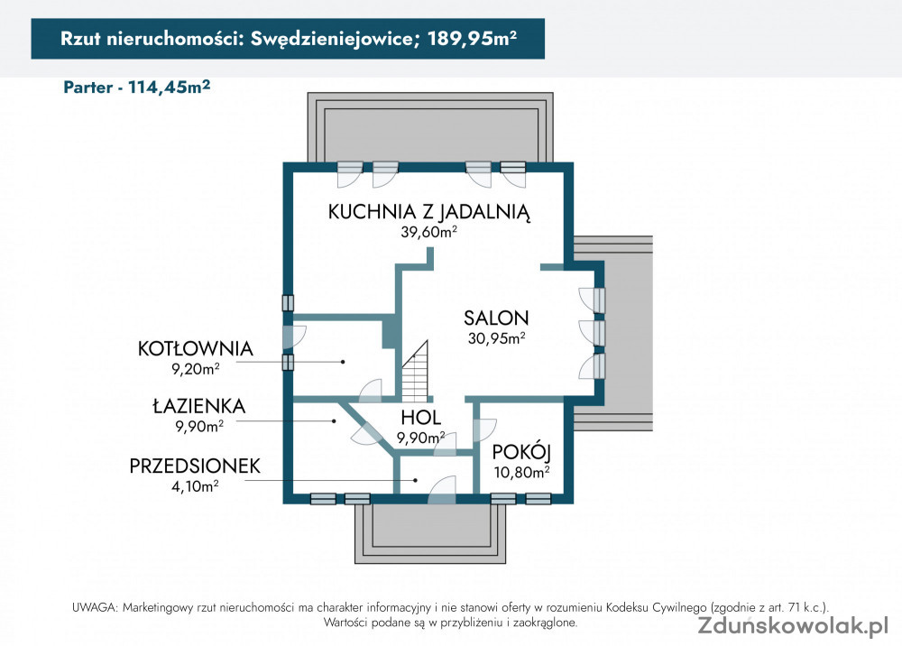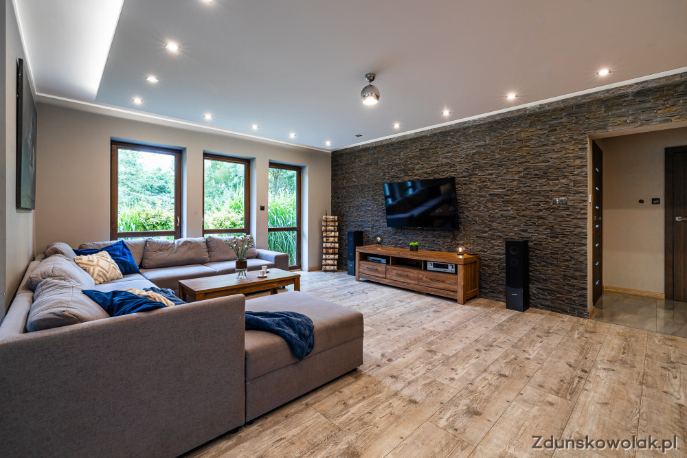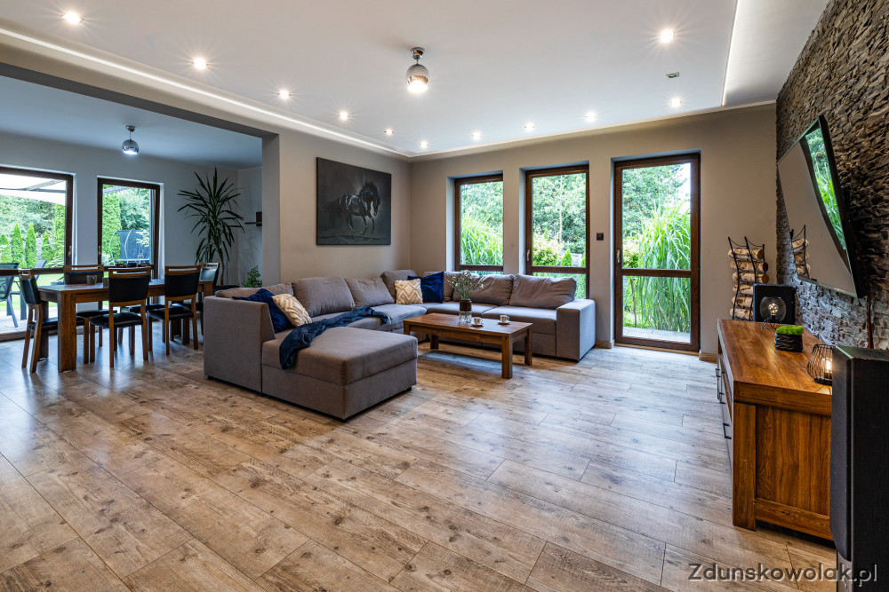 Sprzedam dom jednorodzinny, jednopiętrowy z użytkowym poddaszem o powierzchni 240 mkw, z czego użytkowej jest 190 mkw, położony na działce liczącej 3000 mkw. Nieruchomość znajduje się w Swędzieniejewicach przy ul. Staszica - jest to droga prowadząca ze Zduńskiej Woli do Osiedla Karsznice. Dom nawiązuje do stylu dworkowego, posiada cztery pokoje, duży salon, kuchnię, dwie łazienki oraz dwa tarasy.