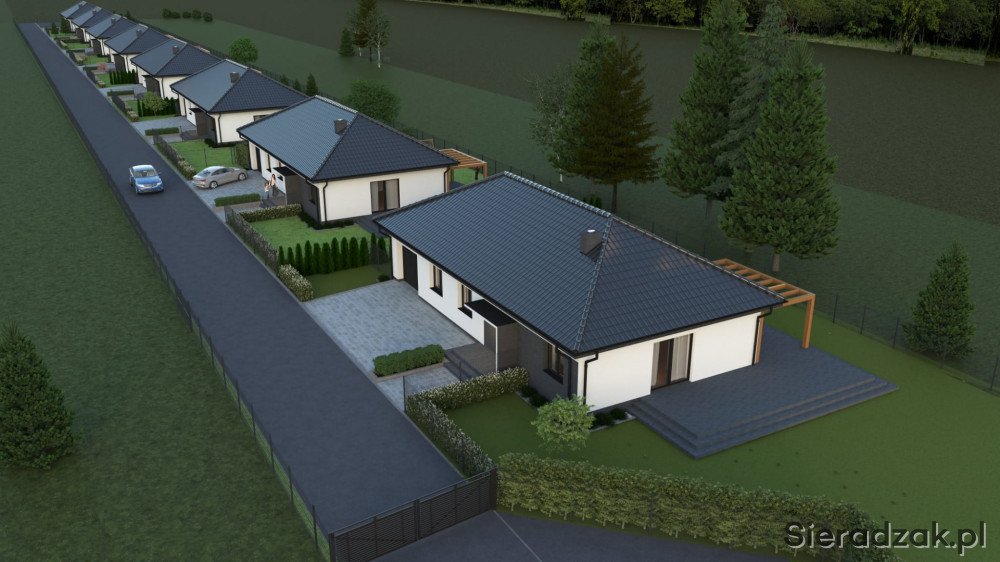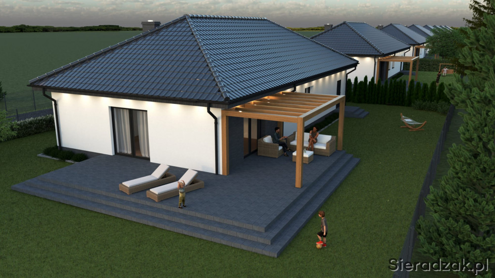 Na każdej z ośmiu działek powstanie parterowy dom jednorodzinny o zwartej bryle z garażem jednostanowiskowym o łącznej powierzchni 138,20 m2.