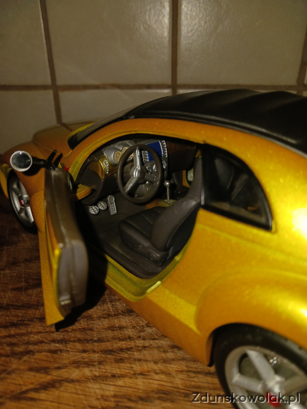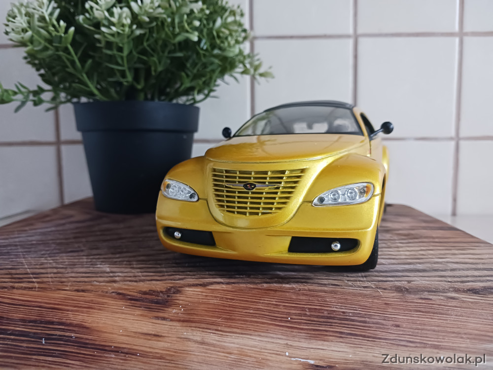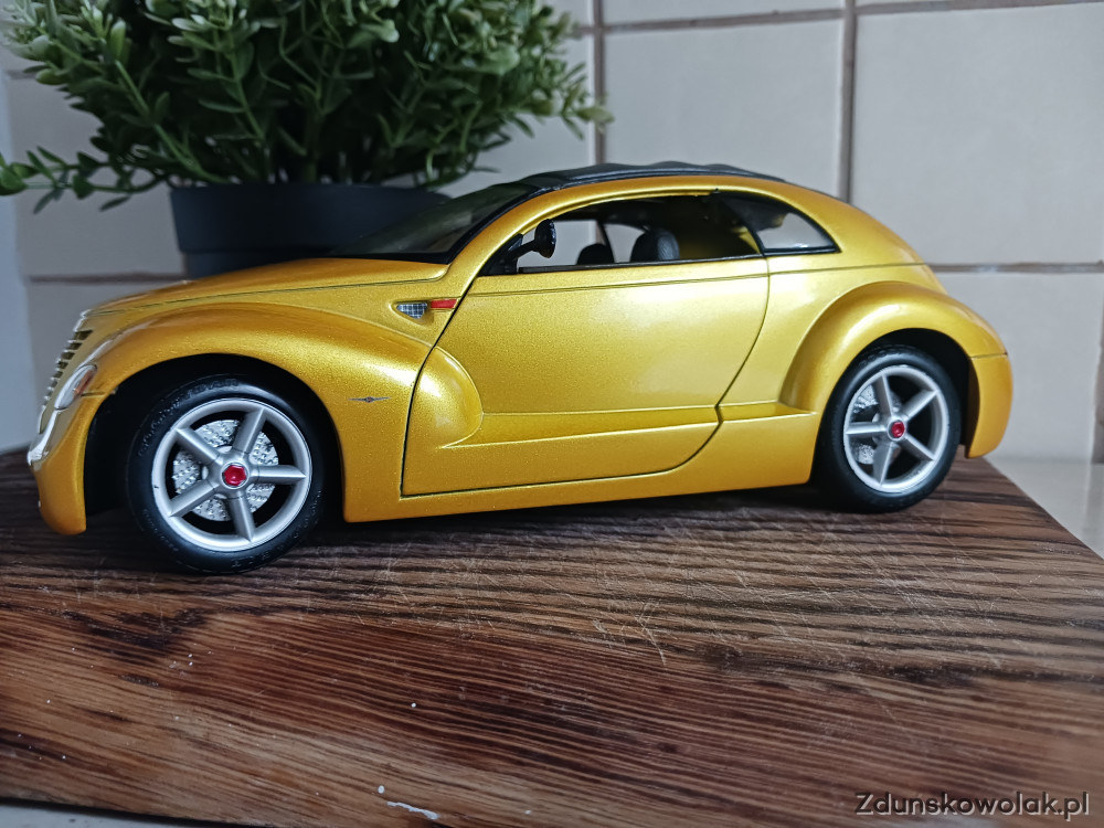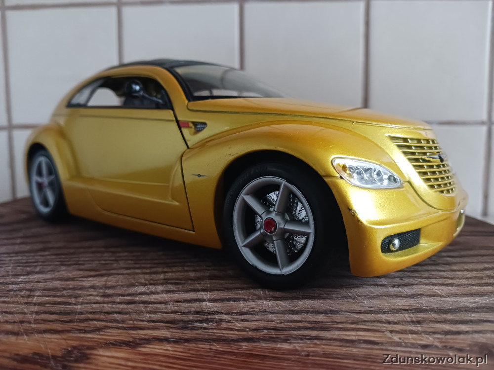 Chrysler Pronto Cruiser Concept w skali 1:18 samochodu który nie wszedł do produkcji a zastąpił go Chrysler Pt Cruiser Projektowany przez tego samego inżyniera Bryana Nesbitta. Kolor Aztec Yellow