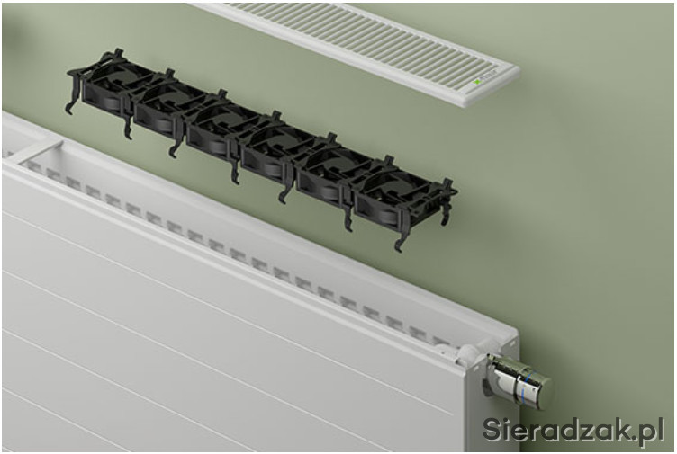x-flair jest idealnym grzejnikiem do niskich temperatur zasilania Dzięki połączeniu technologii x2 z wentylatorami osiowymi, niskotemperaturowy grzejnik szybko się nagrzewa, skutecznie rozprowadzając ciepło w pomieszczeniu.