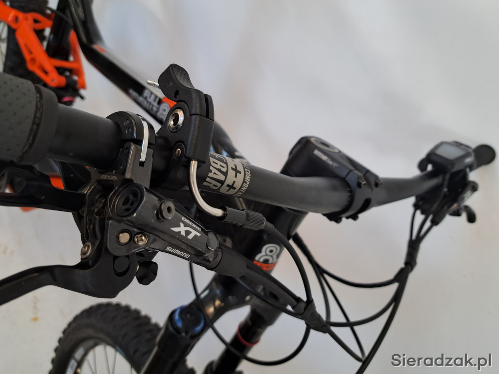 rama aluminium 6061 19" 49cm (L),napęd 2x10,przerzutka tył shimano deore xt,przerzutka przód shimano slx,manetki shimano deore,hamulce hydraulczne tarczowe shimano deore xt 203/180,amortyzator rock shox revelation z blokadą skoku,skok amortyzatora 150mm,damper rock shox deluxe,siodło haibike sduro,sztyca podsiodlowa regulowana manetką przy kierownicy,opony schwalbe nobby nic 2.80,obręcze rodi tryp 35,kierownica haibike components 780mm.