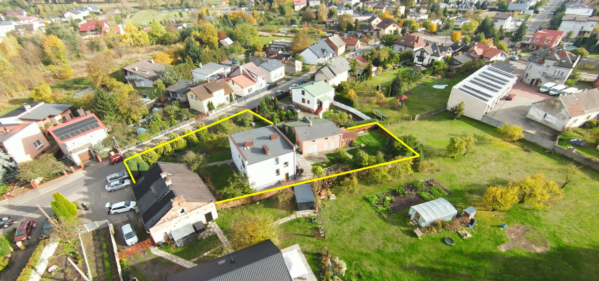Cała nieruchomość składa się z wolnostojącego domu jednorodzinnego, budynku gospodarczego oraz działki o powierzchni 1372 m2.