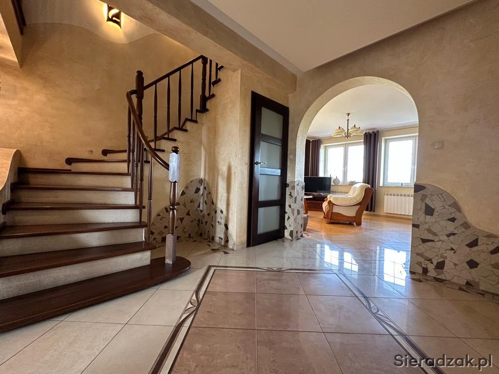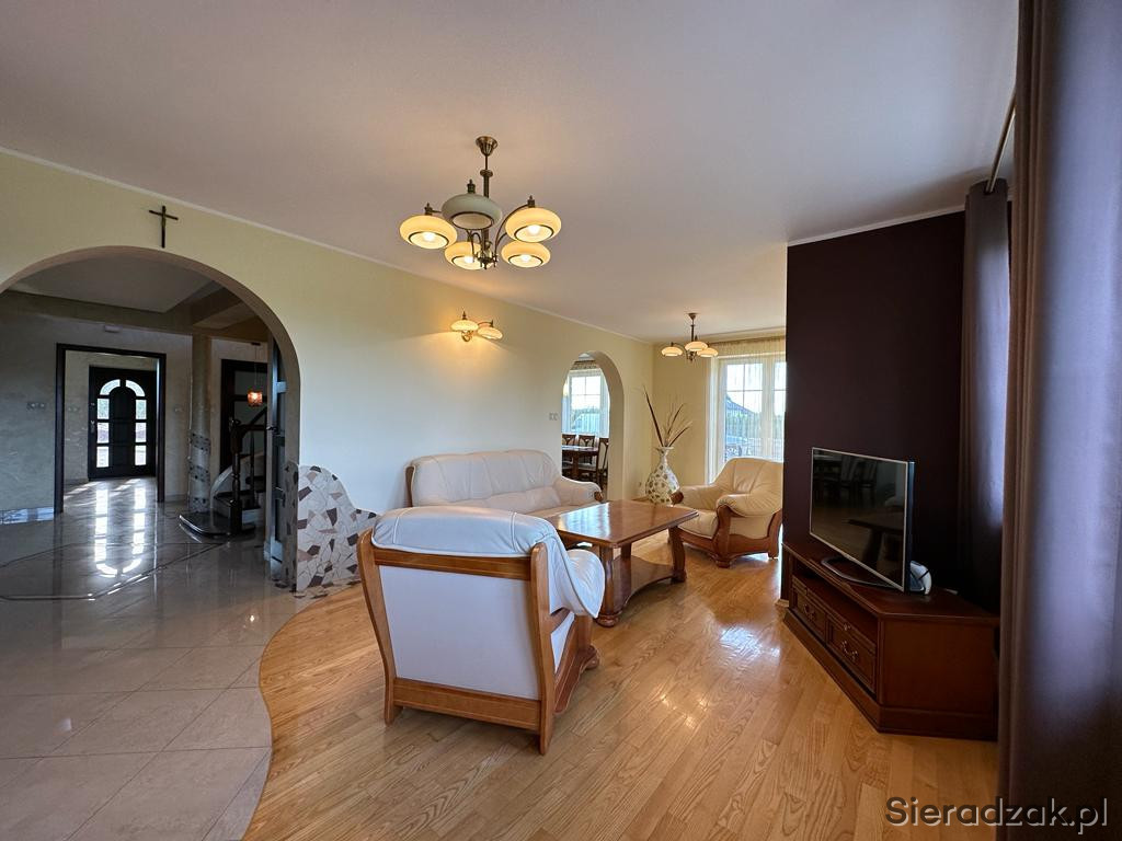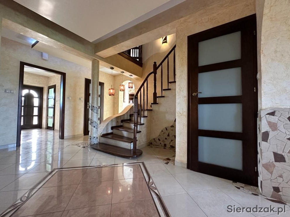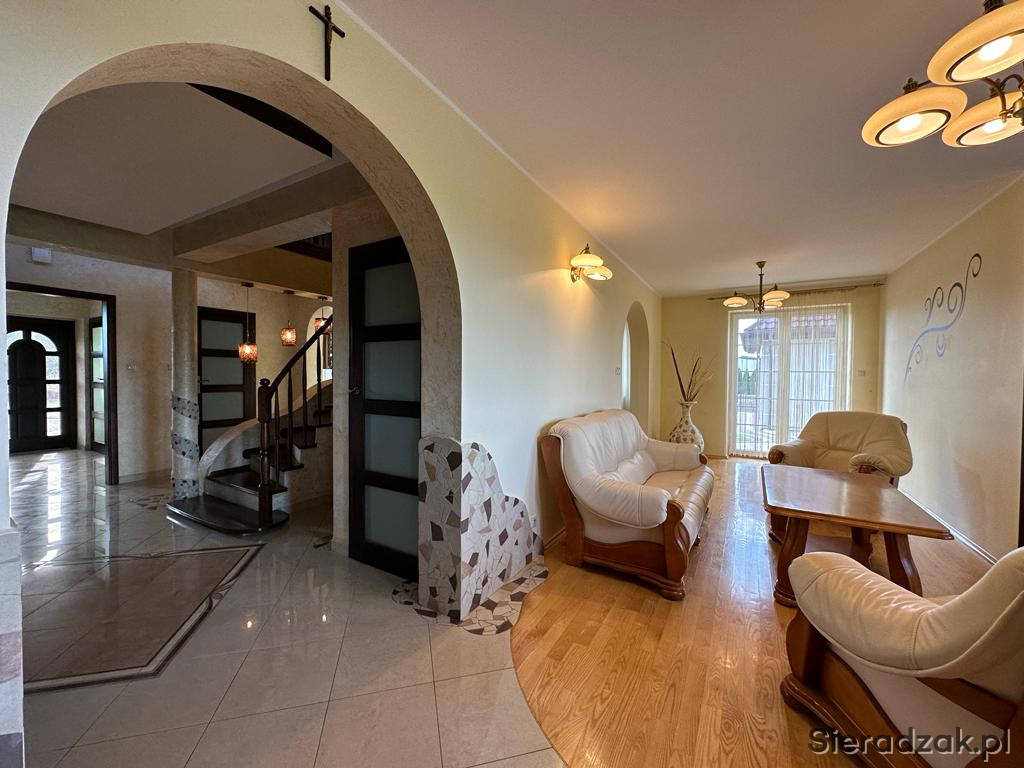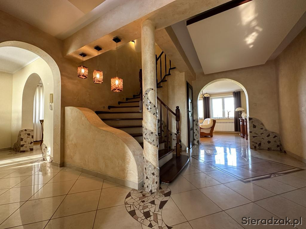 Klasyczny, przytulny dom z ciekawie prezentującą się elewacją o harmonijnym i ciepłym wnętrzu z czterema sypialniami oraz porządny, przestronny budynek garażowo – gospodarczy z dodatkowymi dwoma miejscami postojowymi położone na ciekawie zaaranżowanej działce.
