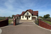 OGRODZENIE - szeroki, bo aż 46 m front działki ogrodzony wykonanym z klinkieru i kutych metalowych przęseł . Brama wjazdowa sterowana automatycznie. W pozostałej części działki również przęsła metalowe.