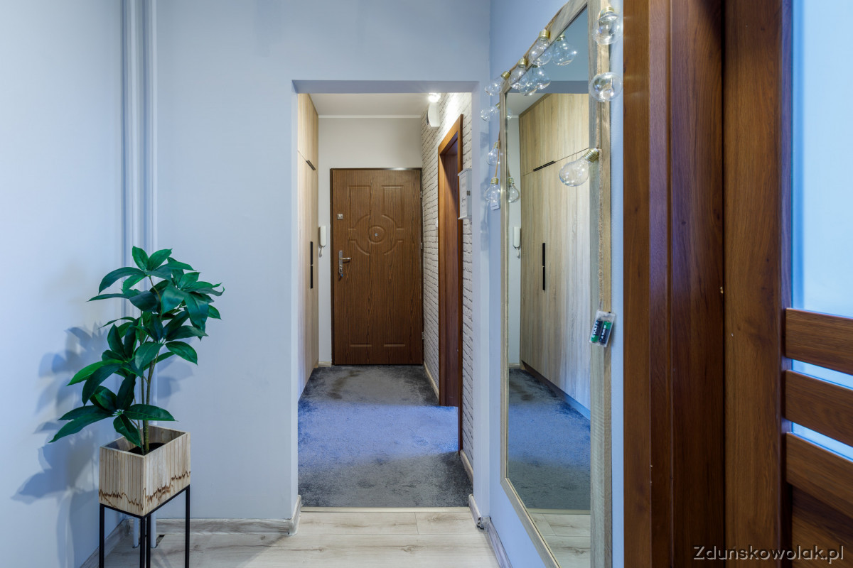 Do wszystkich pomieszczeń wejdziemy z korytarza, gdzie zaraz na wejściu wita nas duża zabudowana szafa na przechowywanie odzieży czy butów, dzięki czemu mamy niczym niezakłóconą, wolną przestrzeń.
