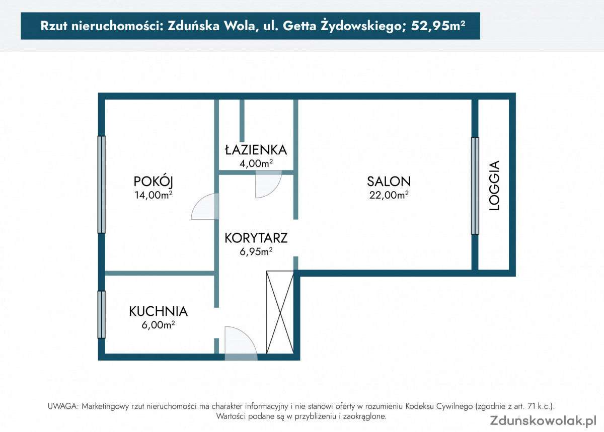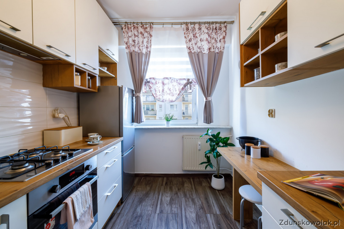 Sprzedam 2-pokojowe wyremontowane mieszkanie w nowoczesnym stylu o powierzchni 52,95 mkw. Zlokalizowane jest ono na drugim piętrze 4-piętrowego bloku na osiedlu Zachód przy ul. Getta Żydowskiego w Zduńskiej Woli.