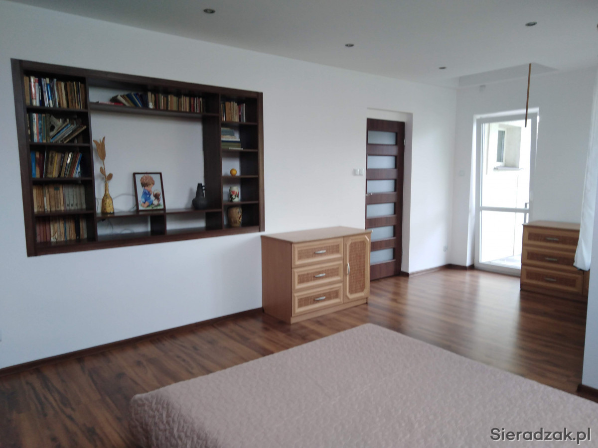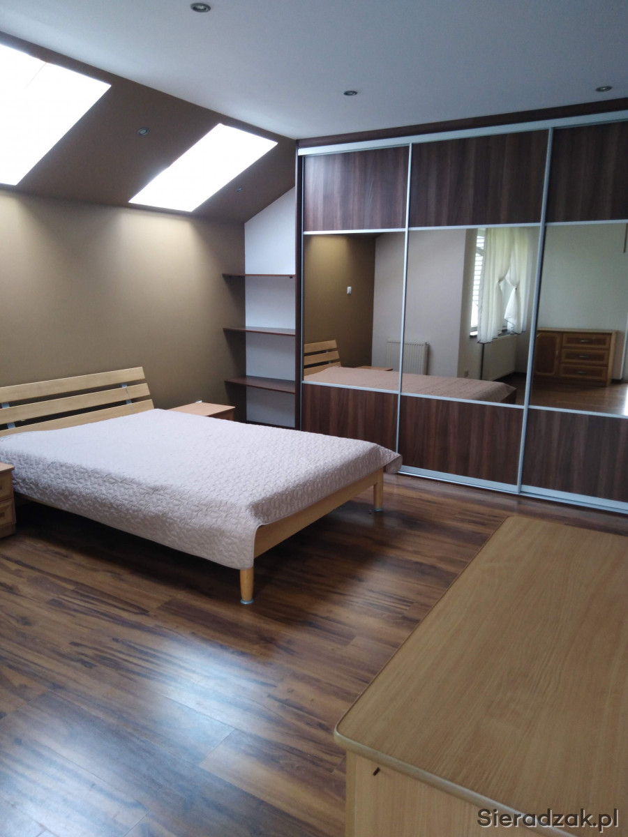 pokój 1: 23,3m2 z balkonem, okna dachowe, gładzie, panele podłogowe, szafa komandor, wyjście na strych;