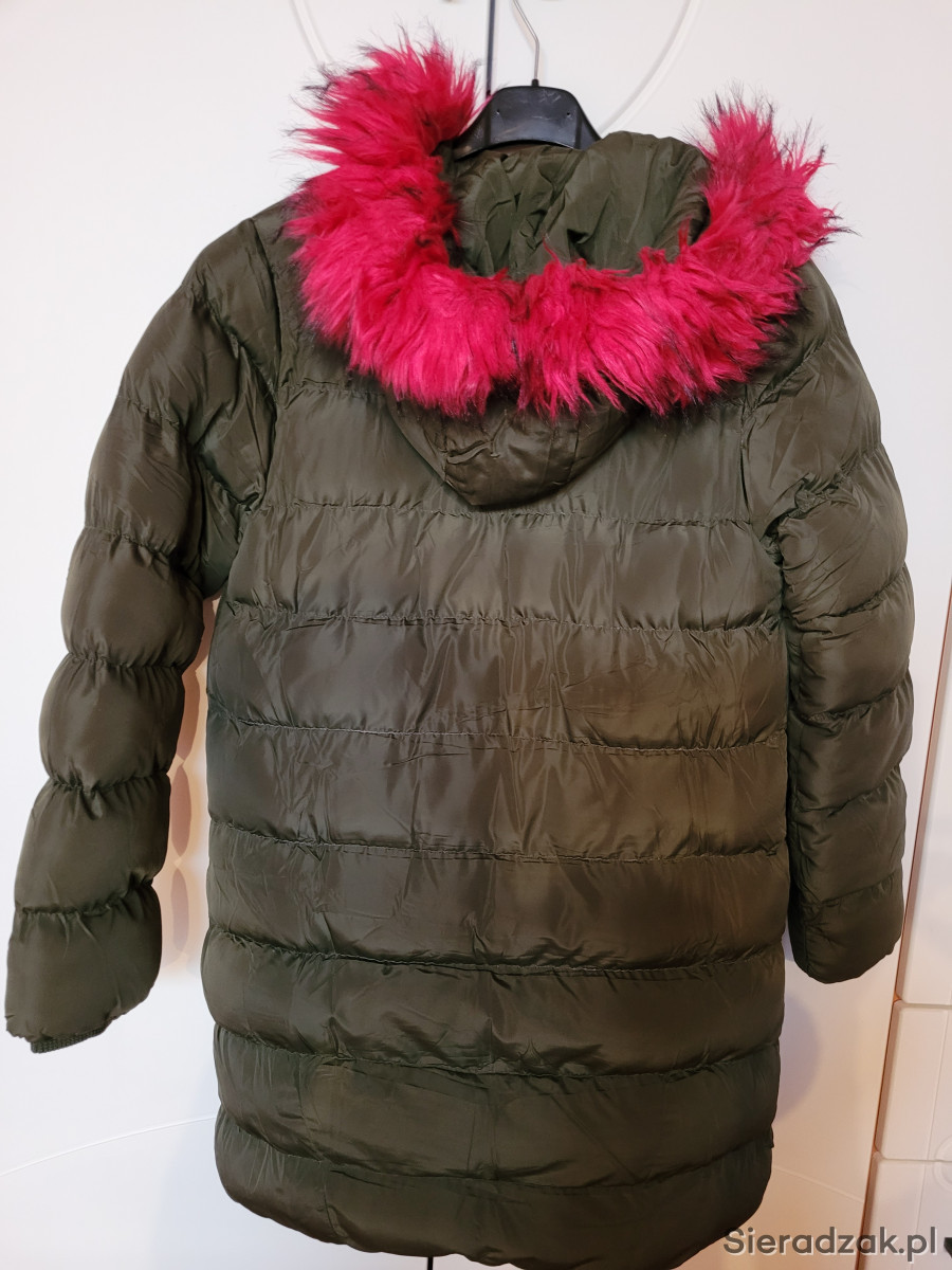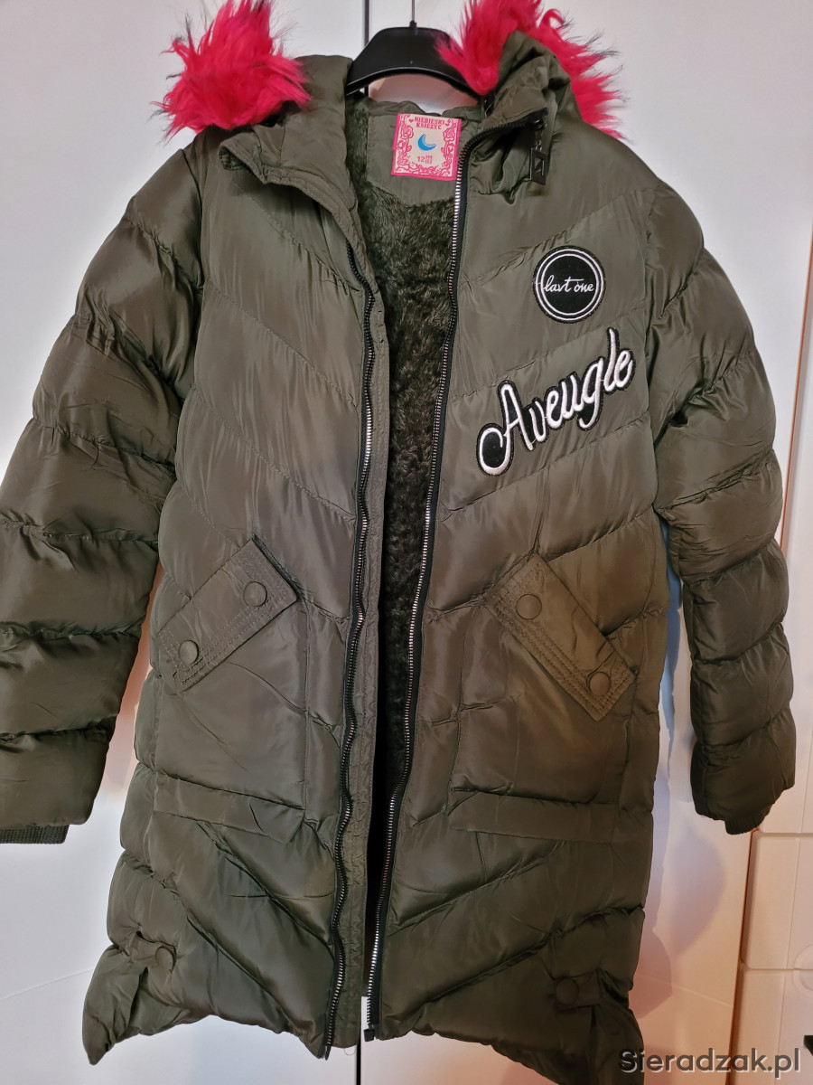 Mam do sprzedania kurtke zimową dla dziewczynki o rozmiarze 146/152. Kurtka jest w kolorze ciemnej zieleni z kapturem i futerkiem we wnątrz. Stan idealny.