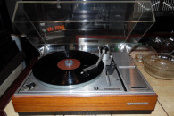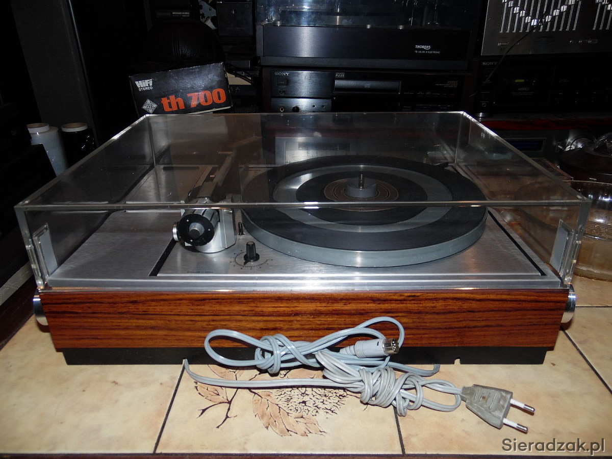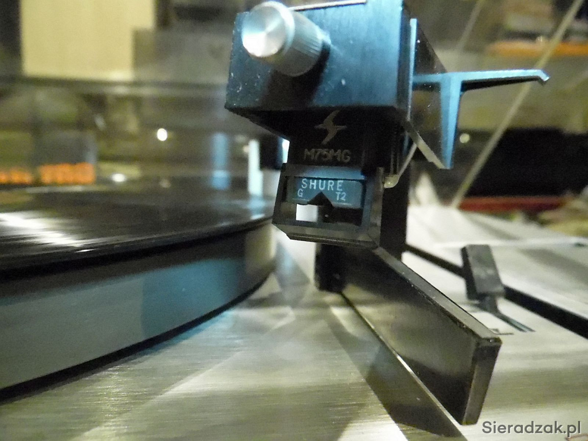 Gramofon po włączeniu do prądu kręci obsługa manualna automatycznie podnosi tylko ramię. Zapewne smary do wymiany lub tzw pimpel. Zachowany przepięknie gabinetowy stan chyba wogóle nie był używany. W komplecie katapulta do singli. Polecam.