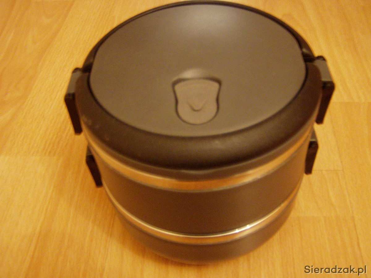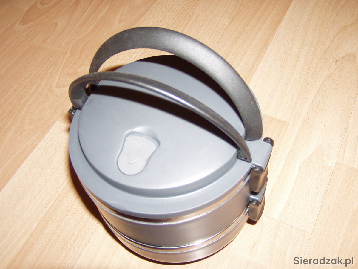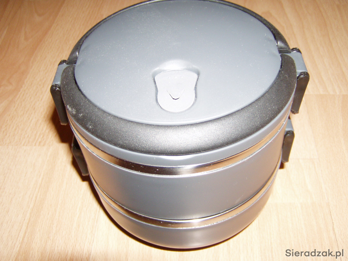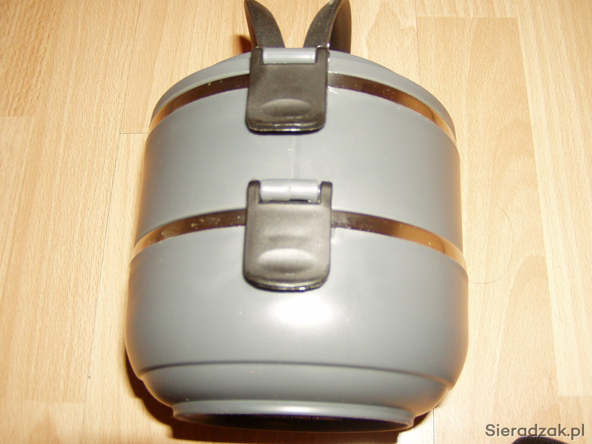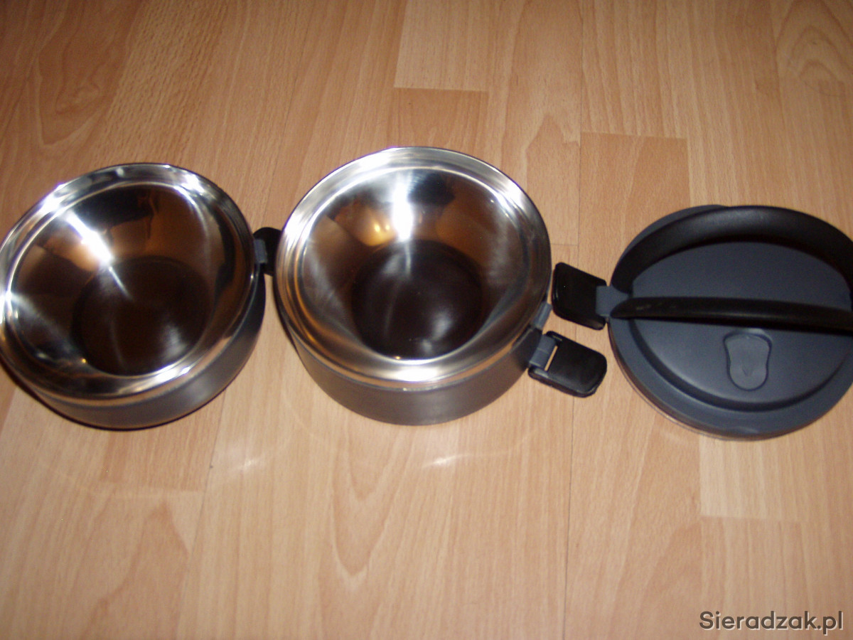 Sprzedam nowy termos do żywności. Dwie komory po ok 0,5 litra z zaworkiem oddychającym. Każde naczynie zamykane jest klipsami, a uchwyty chowane na boki. Ładne estetyczne wykonanie. Polecam!!!