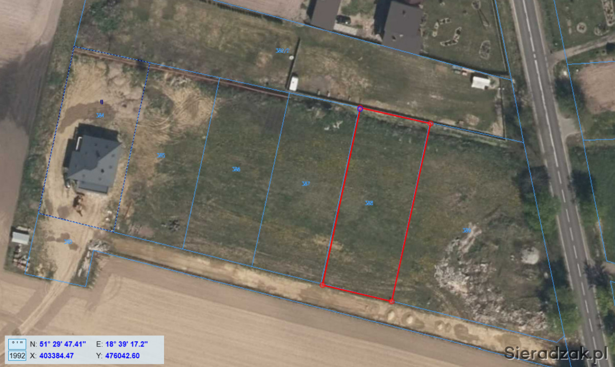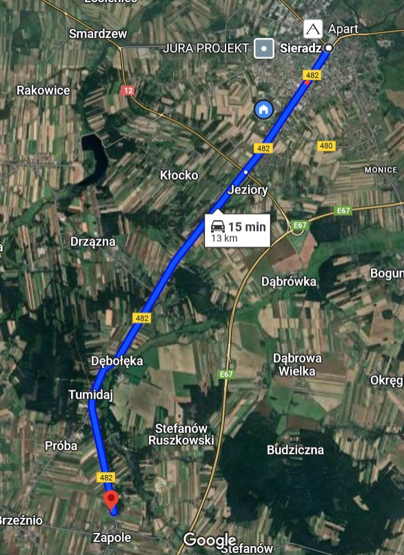 Do sprzedaży działka budowlana w kształcie prostokątna (szerokość – 23m, długość – 58,5m) w miejscowości Zapole (gm. Brzeźnio) o powierzchni 1347 m2. Wjazd na działkę odbywa się drogą wewnętrzną utwardzoną (gruz + destrukt) bezpośrednio z drogi wojewódzkiej Sieradz-Złoczew (15 minut od głównego ronda w Sieradzu). Działka nie jest uzbrojona. Media dostępne w drodze wewnętrznej. Klasa bonitacyjna gruntu: IVa, IVb.