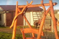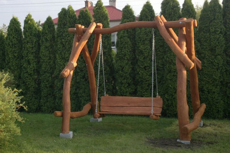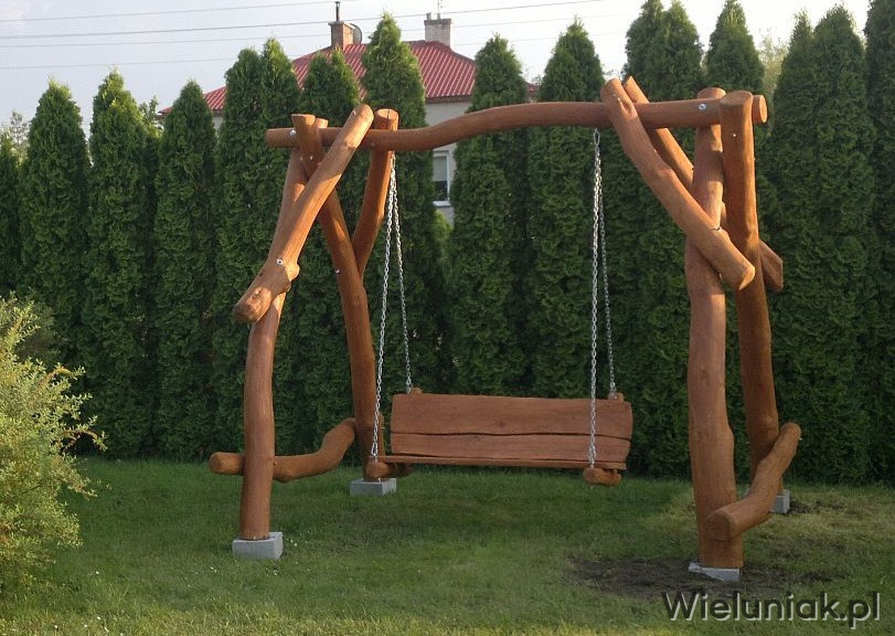 Huśtawki wykonywane są z odpowiednio dobranych, naturalnych bali drewnianych. Bale są sezonowane, po czym szlifowane i impregnowane Drewnochronem w wybranym przez klienta kolorze. Całość huśtawki jest łączona ze sobą za pomocą ocynkowanych śrub. Siedzisko huśtawki wykonywane jest z desek niesztorcowanych, co zapewnia niepowtarzalny wygląd produktu. Siedzisko mocowane jest na ocynkowanym łańcuchu, który zapewnia trwałość i bezpieczeństwo urządzenia. Huśtawka jest stabilna i bezpieczna.