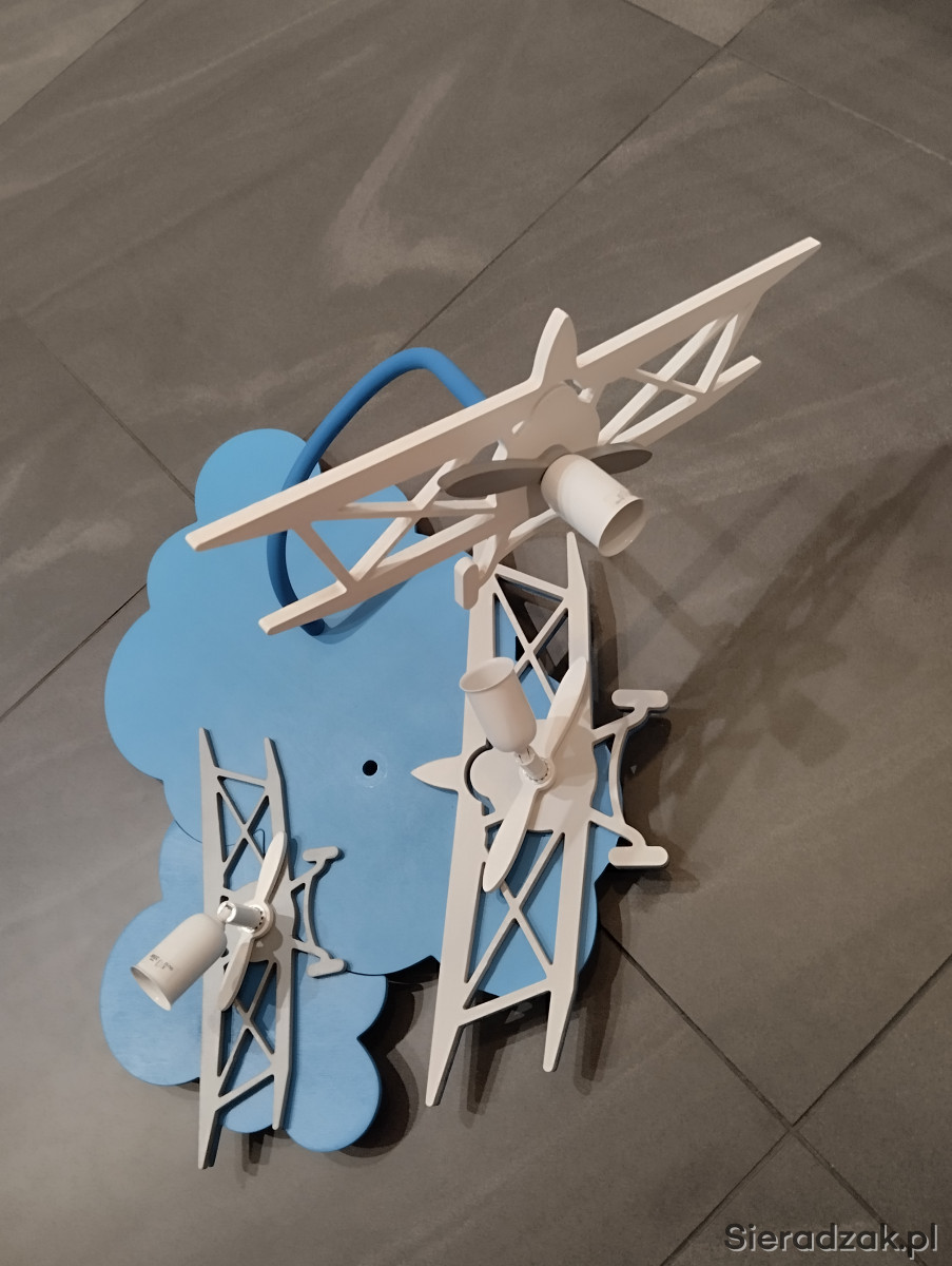 Witam mam do sprzedania bardzo ładna lampę do pokoju dla chłopca.Lampa w bardzo dobrym stanie,drewniana.Posiada element ruchomy.Bardzo ładnie się prezentuje na suficie.Lampa na trzy żarówki.Polecam