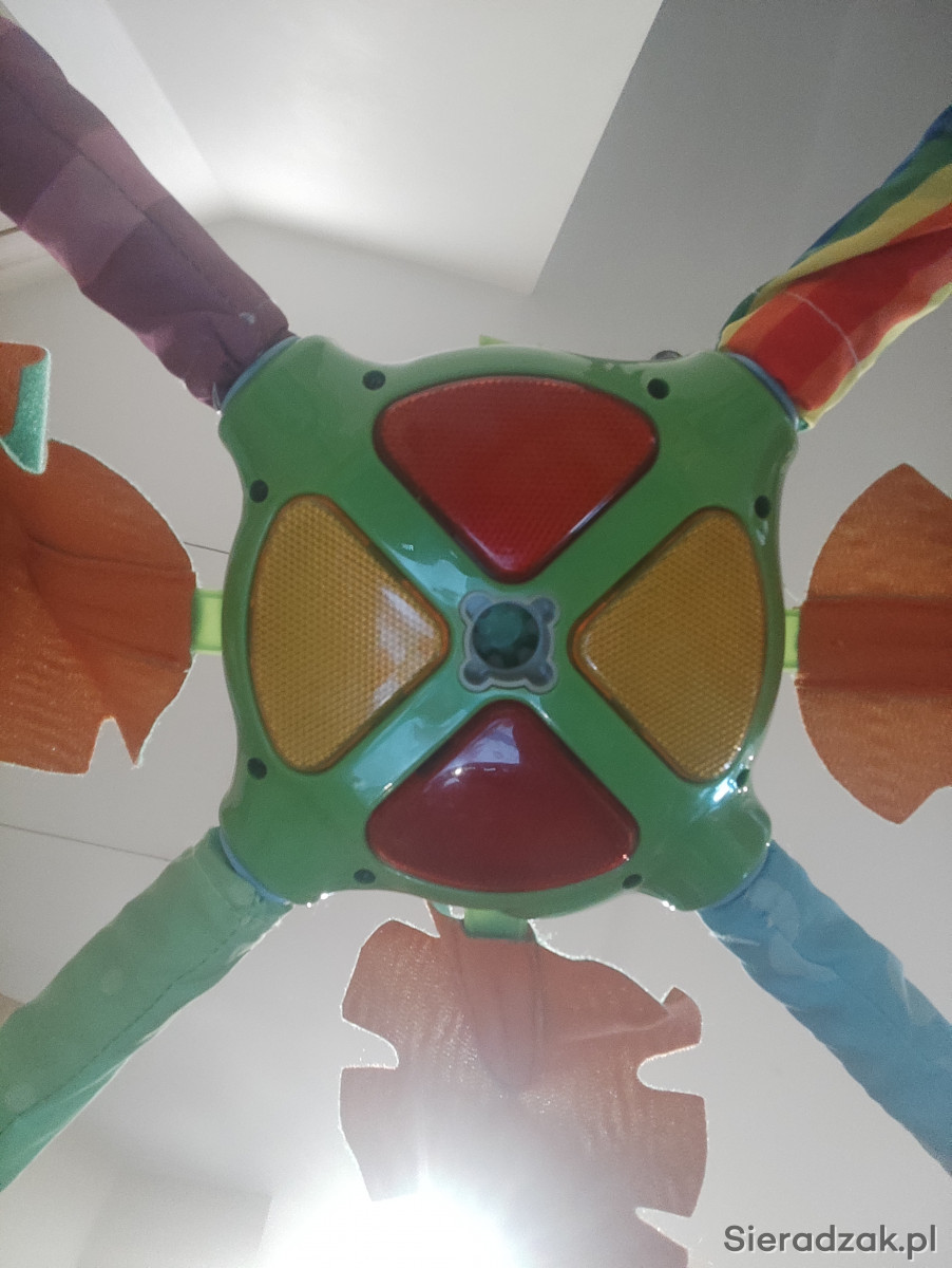 Dodatkowo zabawę umilają kolorowe światełka i wesołe melodyjki lub odgłosy przyrody.Istnieje możliwość regulacji głośności lub całkowitego wyłączenia muzyki.