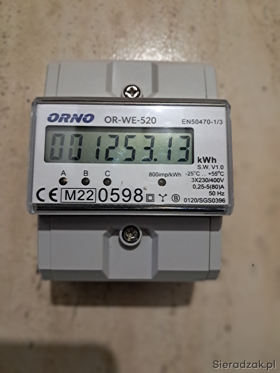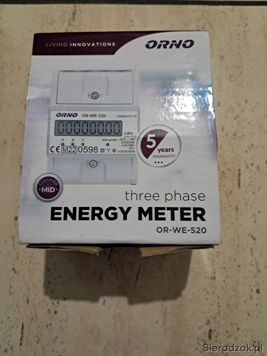 Sprzedam mało używany, praktycznie nowy 3-Fazwowy Licznik energii elektrycznej, 80A, MID, 3 moduły, DIN TH-35mm OR-WE-520 ORNO .