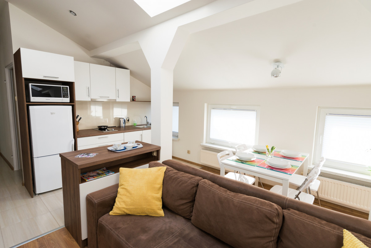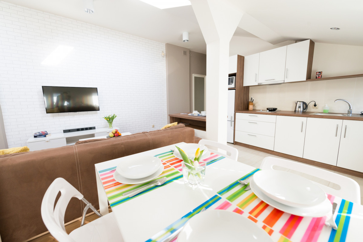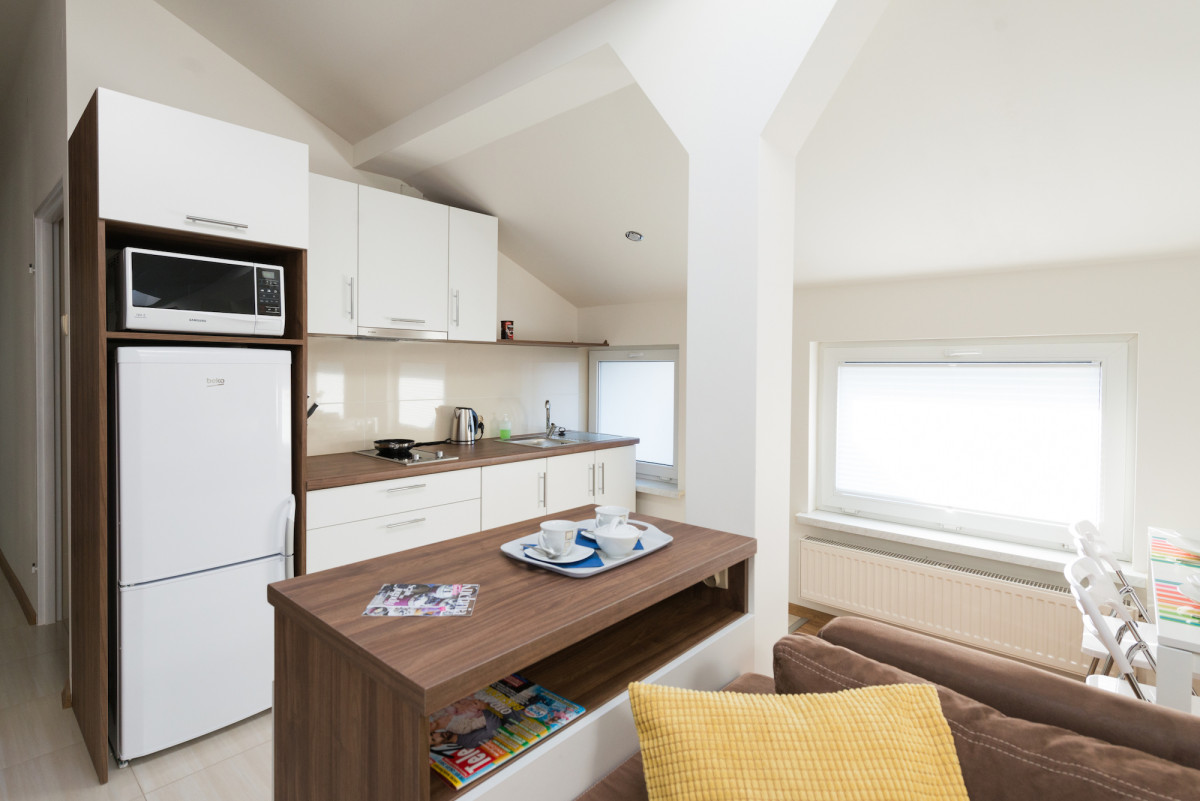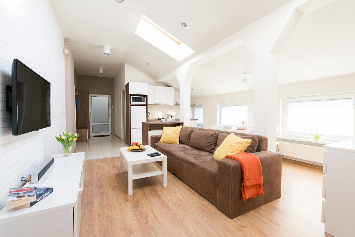 Apartament nr 21 mieści się na drugim piętrze kamienicy. W tym samym budynku w podziemiach znajduje się pub, zapewniający obsługę na najwyższym poziomie. Na pozostałych piętrach kamienicy znajdują się mieszkania.
