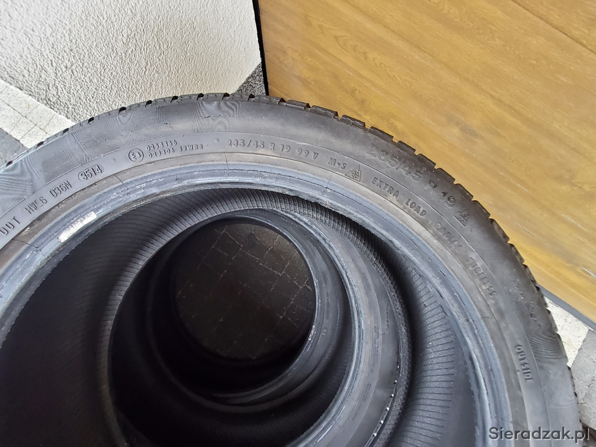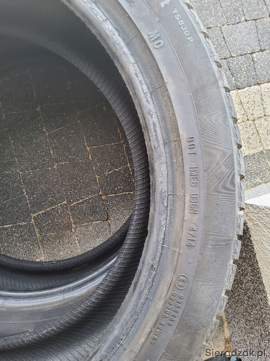Sprzedam komplet 4 opon zimowych Continental Conti Winter Contact TS 830 P w rozmiarze 235 45 R19 99V. Opony posiadają rant ochronny, wzmocnienie (XL) MO-Mercedes-Benz, przyczepność na śniegu (3PMSF). DOT opon: 2x3514, 2x4714, wysoki bieżnik. Opony w stanie dobrym- jak na zdjęciach.