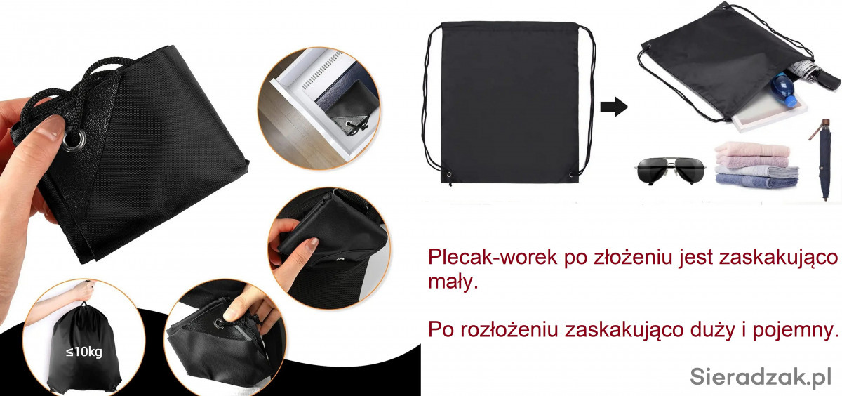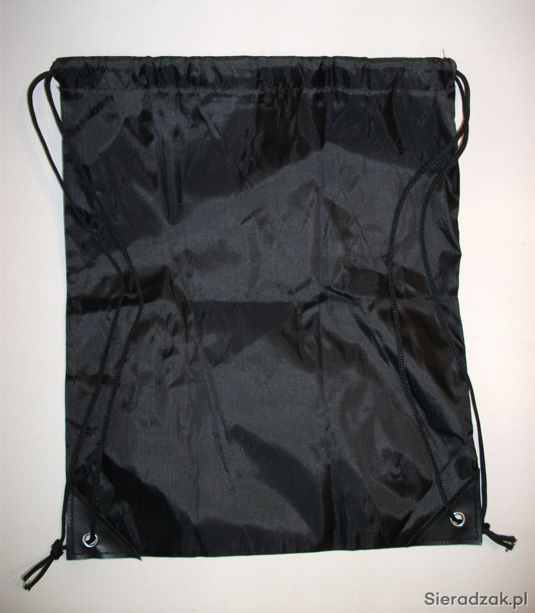 Oferuję jednolicie czarny worek - plecak ze ściągaczami na sznurkach.