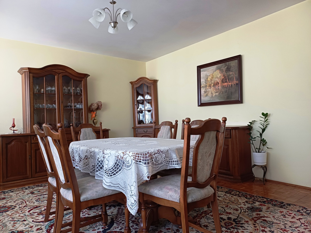 Mieszkanie dwustronnie rozkładowe , składające się z dużego ( 26 m2 ), dobrze doświetlonego salonu, dwóch osobnych pokoi, kuchni, łazienki, osobnej toalety oraz przedpokoju. Mieszkanie przestronne, dobrze nasłonecznione (okna z dwóch stron), zadaszony balkon na teren zielony .