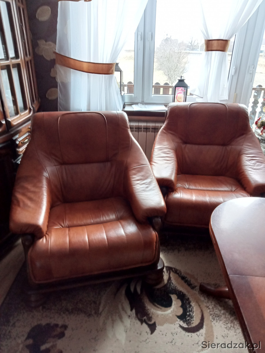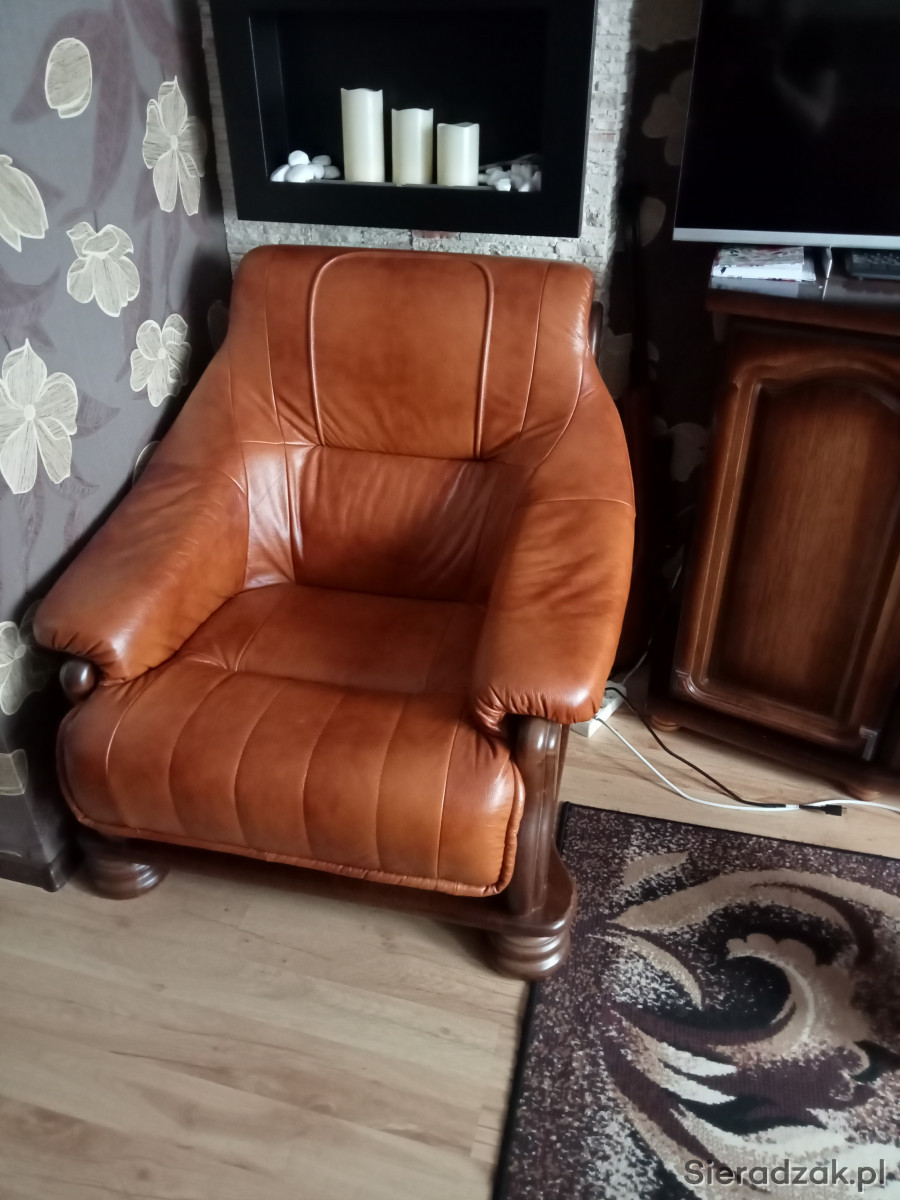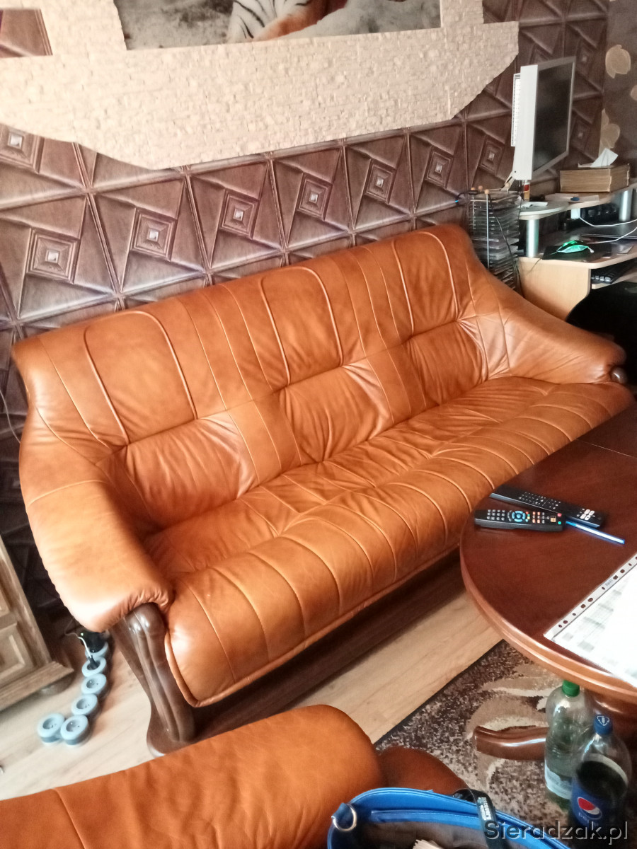 Sprzedam skórzany komplet wypoczynkowy kanapa z funkcją spania + 2 fotele.