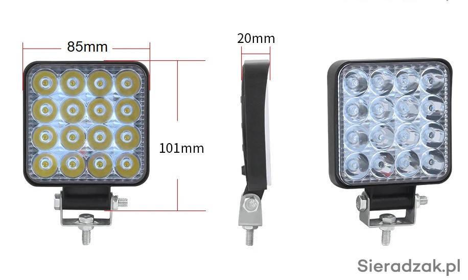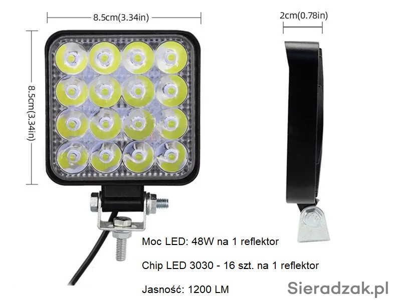- Typ żarówki: Chip LED 3030 - 16 szt./1 reflektor