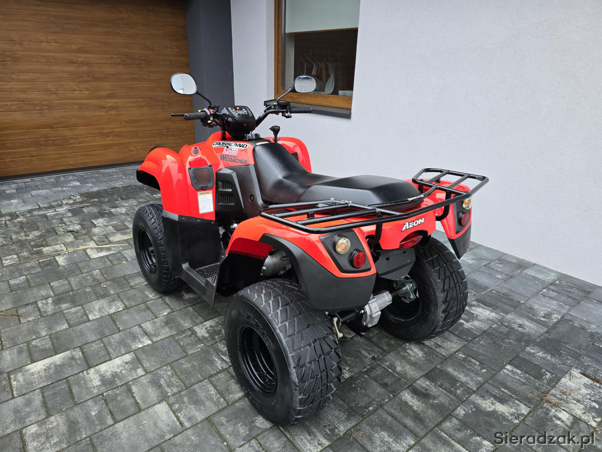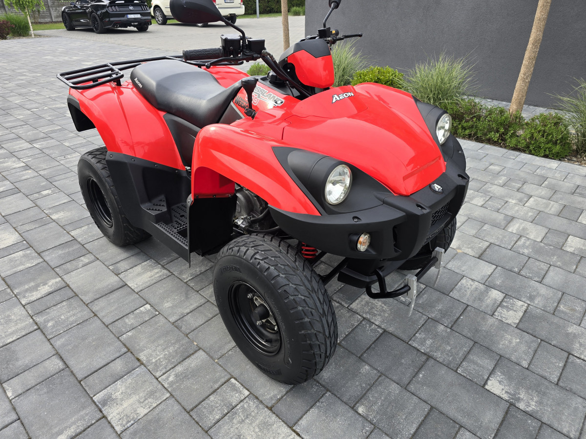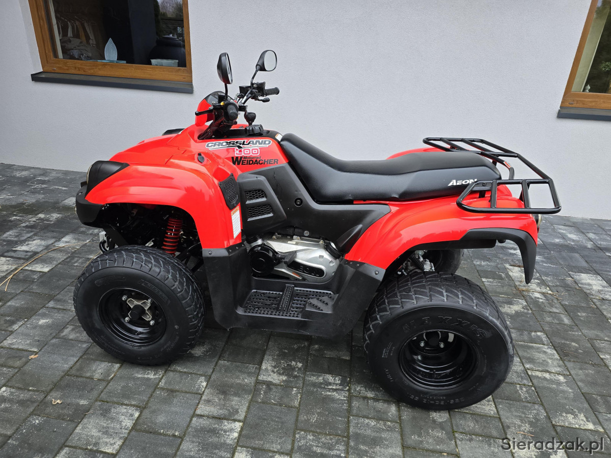 Do sprzedania bardzo zadbany Aeon Crossland 300 z 2007r. Sprowadzony z Niemiec bezpośrednio od właściciela. Homologacja L7e (14kW w dowodzie). Wizualnie prezentuje się bardzo ładnie co widać na załączonych zdjęciach i prezentacji wideo. Quad ma założony większy silnik od Aeona Cobra 400. Silnik jest świeżo po remoncie. Założony został nowy tłok (oryginalny), pierścienie, uszczelki, nowe zawory i uszczelniacze.Na wszystko posiadam paragony i oczywiście stare części. Wymieniony został również olej w silniku, olej w skrzyni, wyregulowane luzy zaworowe, założony nowy żelowy akumulator. Opony w bardzo dobrym stanie. Napęd na wale kardana. Skrzynia automat. Oryginalny przebieg 13864km udokumentowany do samego końca. Quad ma założone również nowe amortyzatory przód i tył oraz nowe drążki kierownicze. Zawieszenie bez żadnych luzów. Do quada jest pełna dokumentacja (mały i duży Brief, książka serwisowa, wydruki z przeglądów TUV, instrukcje, faktury za naprawy itp). Sprzęt był na bieżąco serwisowany. Wszystko udokumentowane fakturami. Quad jest produkcji tajwańskiej. Zapraszam na oględziny i jazdę próbną. Możliwość dowozu do klienta. Na więcej pytań chętnie odpowiem pod numerem telefonu 667-702-600.